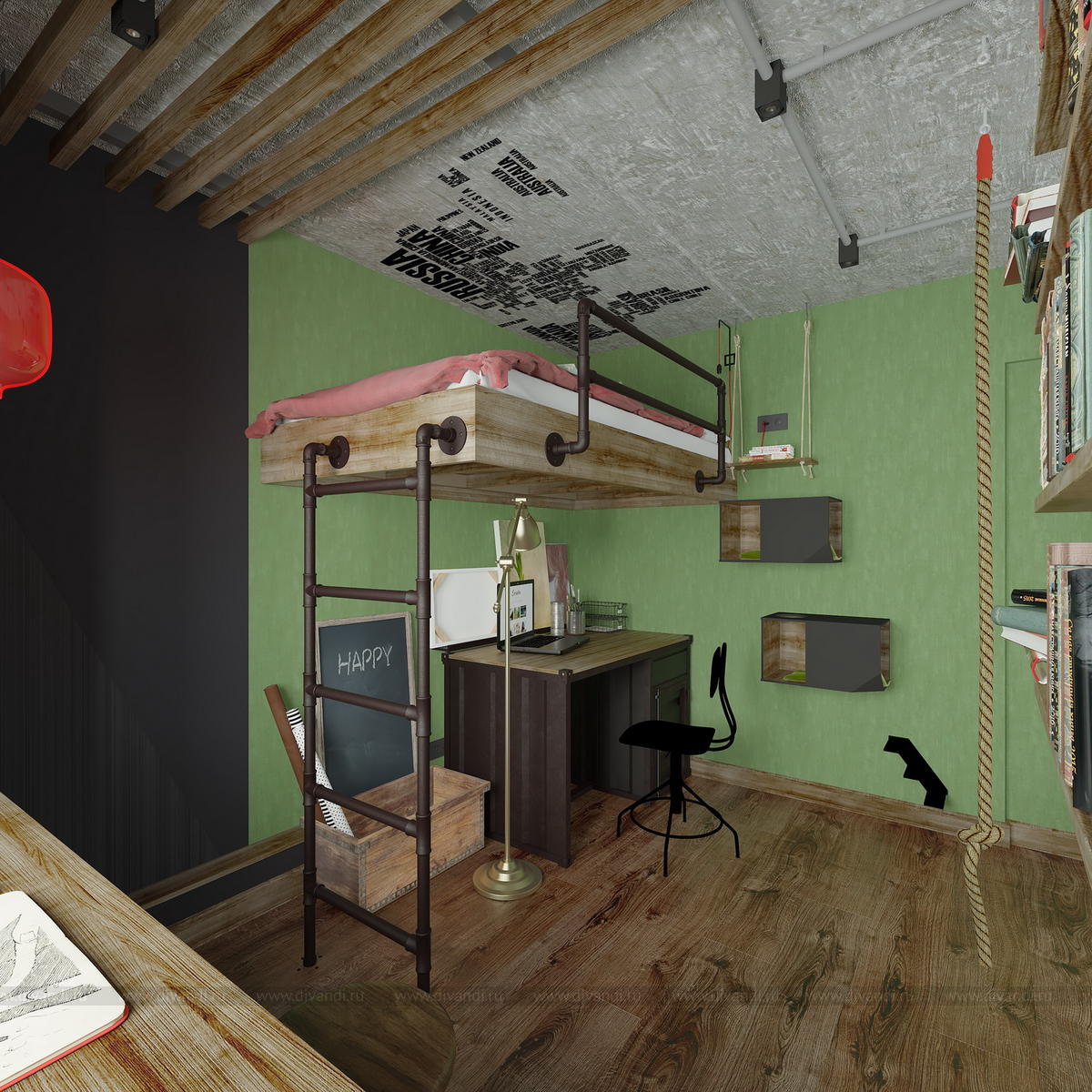 Заканчиваем обзор проекта спальней в типовой квартире на первом этаже для очень неординарной девушки.