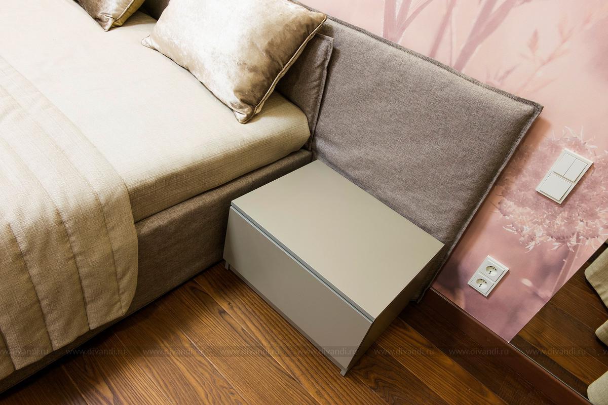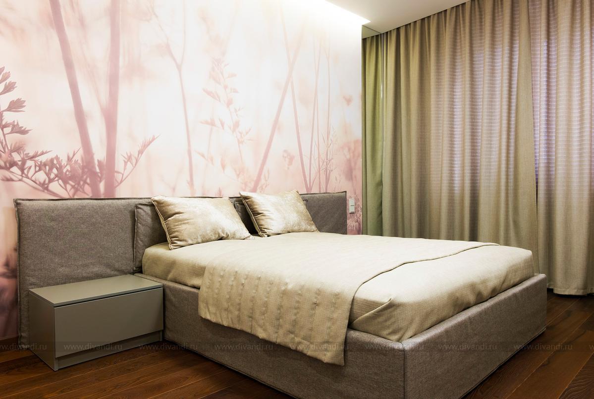 Спальня проектировалась в природных преимущественно бежево-коричневых оттенках.