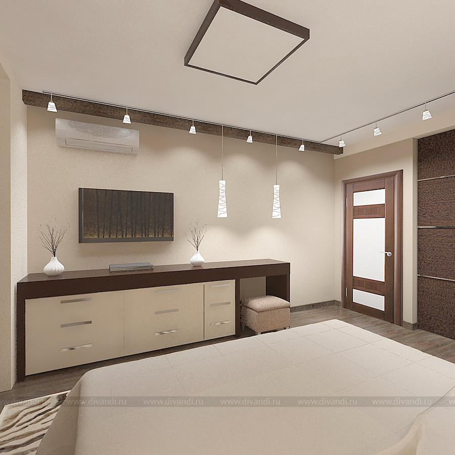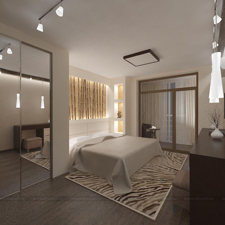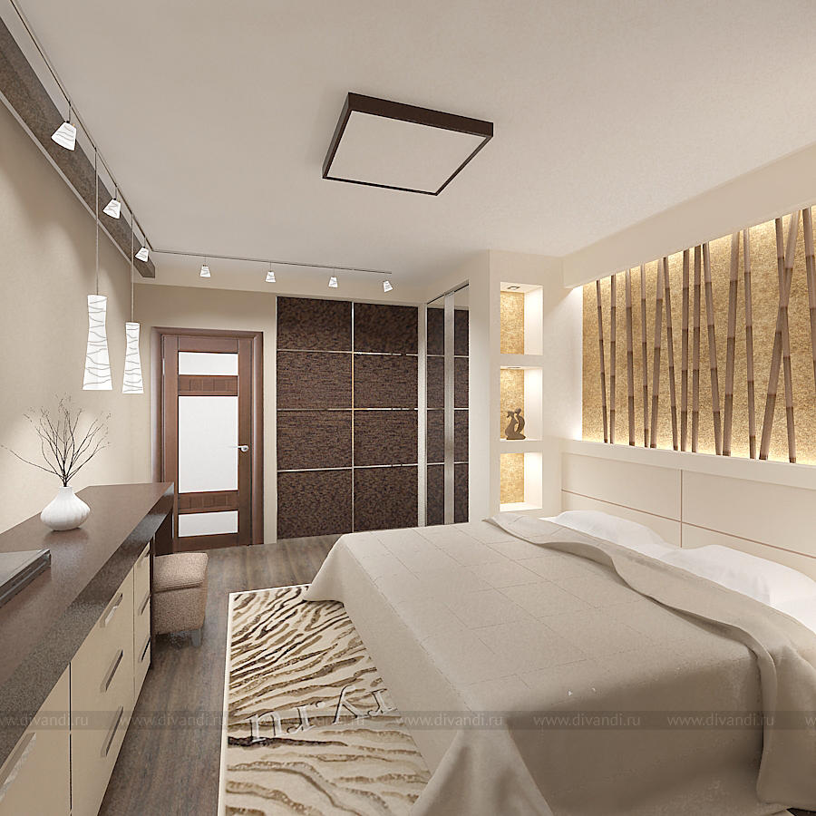 Спальня проектировалась в 2012 году с большой кроватью 2м х 2м в современном стиле с этническими мотивами.