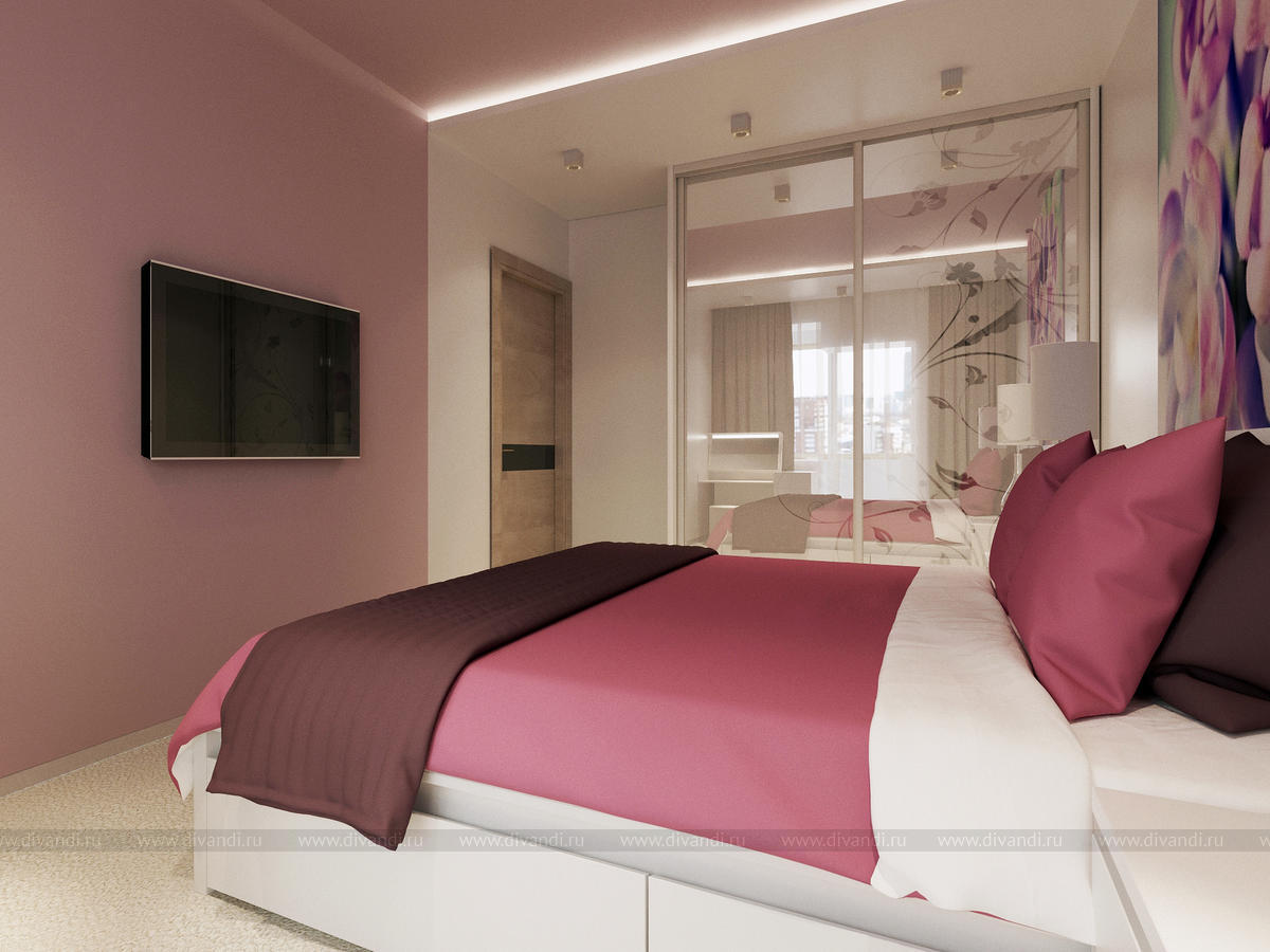 Квартира для молодой семейной пары. Цвета были выбраны заказчиком, в целом, квартира получилась нежной и воздушной.