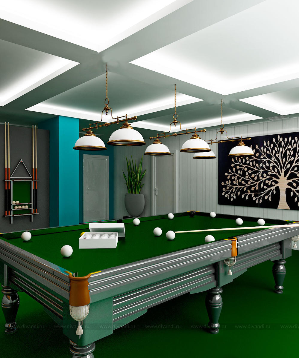 Спортивно-развлекательный этаж с бильярдом. На 3-м этаже дома в Екатеринбурге на переулке Спокойный расположились тренажерная комната, видеозал и бильярдная.