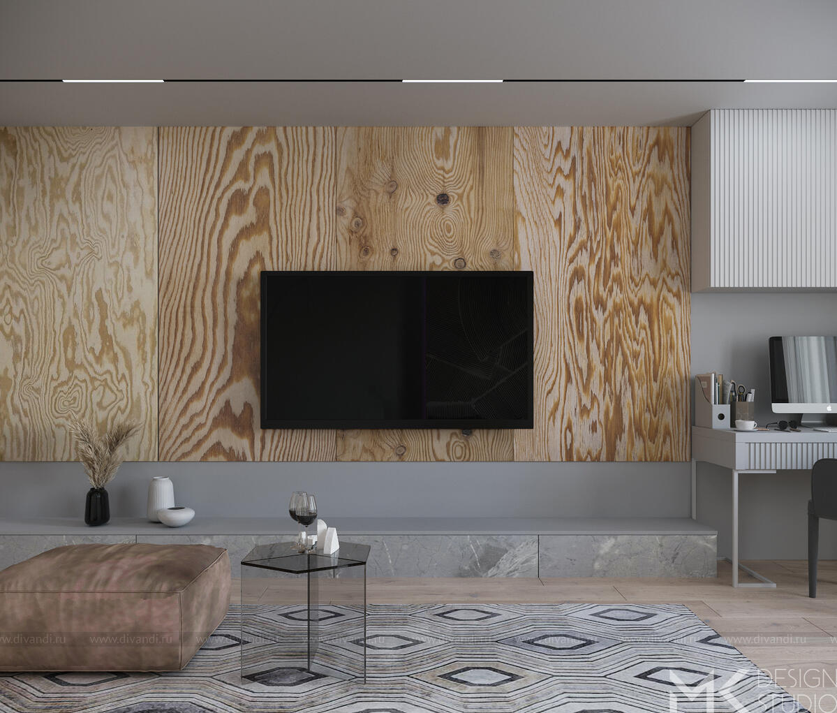 Квартира планировалась для молодой пары. С самого начала был запрос, что хочется творческую квартиру, чтобы некие детали отсылали к творчеству. И хотелось тут отдыхать с друзьями.
