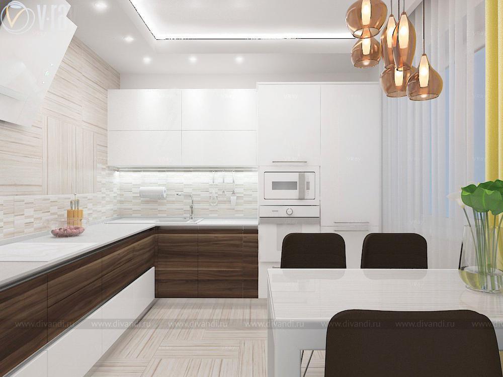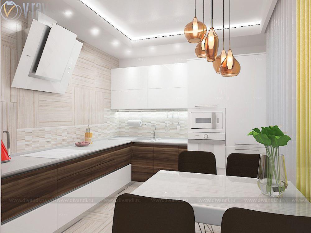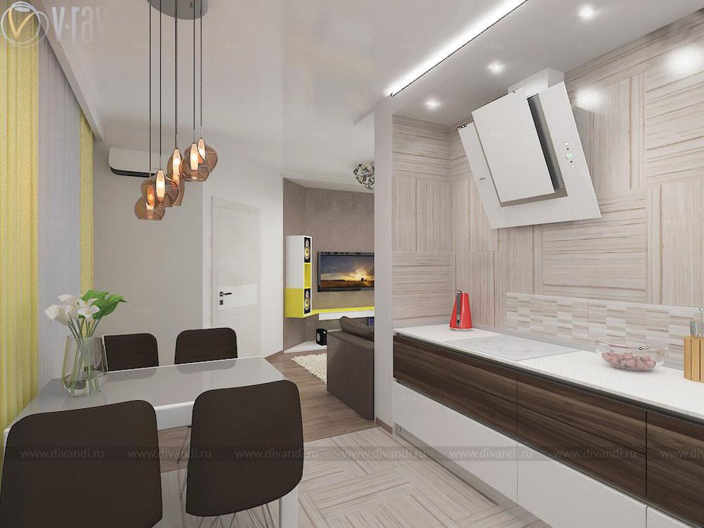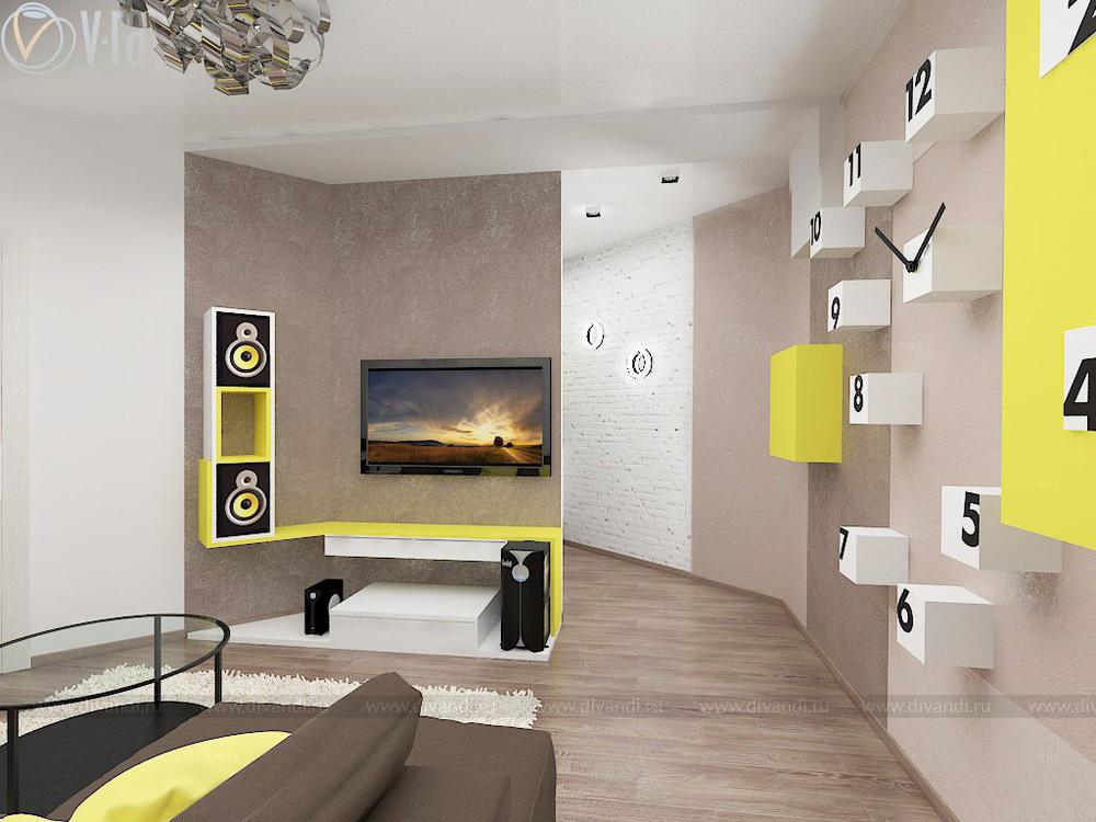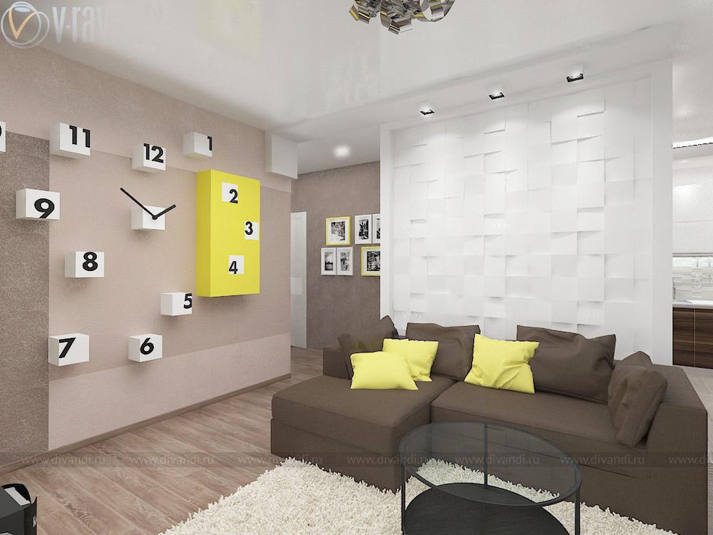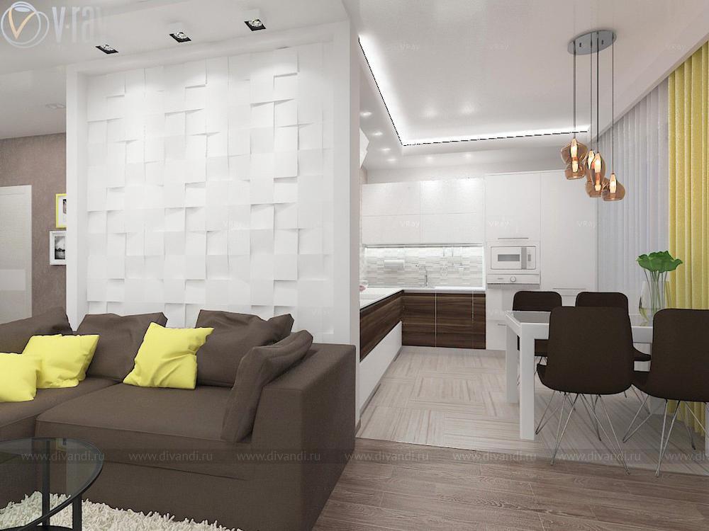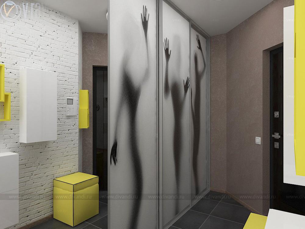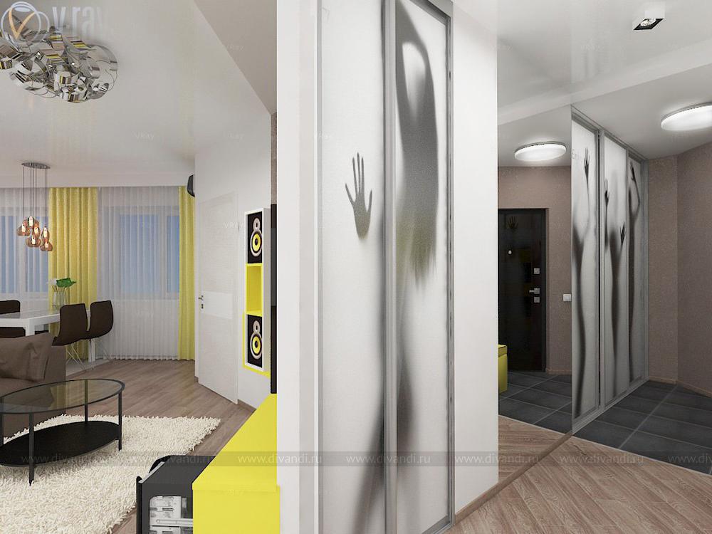 Квартира имеет нестандартную планировку с очень длинным коридором, стены которого составляют развернутый угол по отношению друг к другу. Одной из задач и стало оформление этих стен. Использование ГКЛ конструкций, элементов корпусной мебели и сочетание различных материалов, позволило получить оригинальное решение в декорировании.