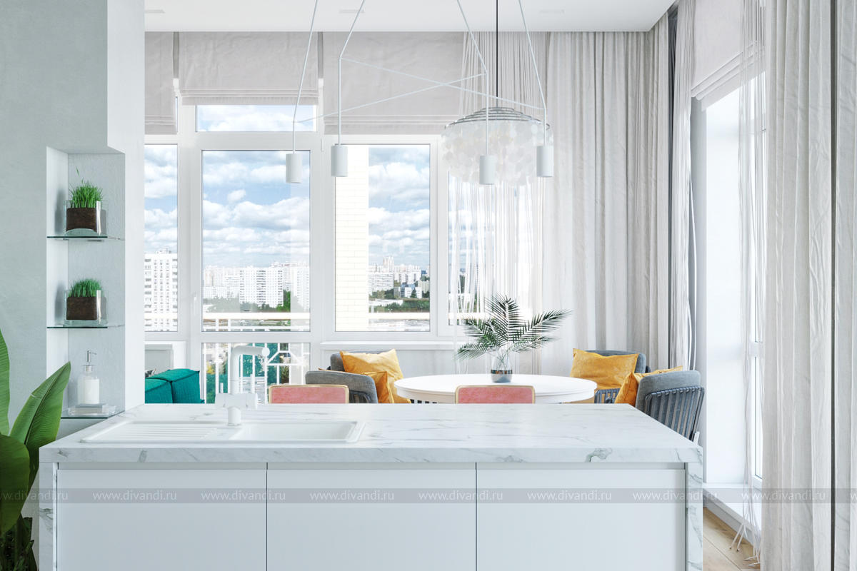 Заказчики очень занятые люди, и отдыхают только в выходные. Поэтому мы решили сделать квартиру для отдыха. Заказчики любят природу, в частности, отдыхать на море. Мы решили черпать вдохновение именно от их увлечений. Отсюда и родилась идея о создании таинственного острова, на котором есть волшебное место – некий оазис, который делает людей счастливыми. И заказчики приехали на этот остров, чтобы найти его.