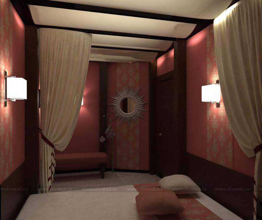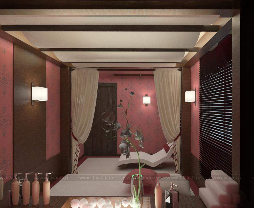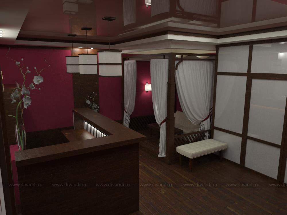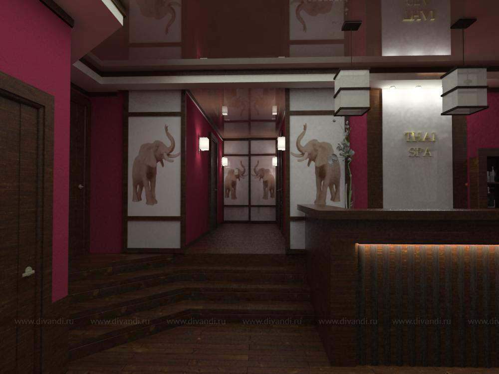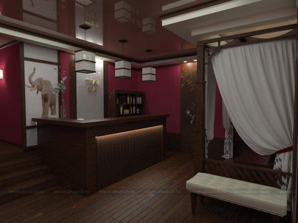 Интерьер выполнен в традиционном тайском стиле с использованием этнических декоративных элементов.