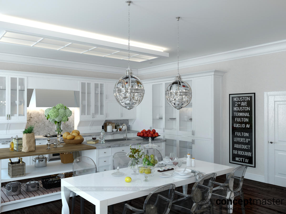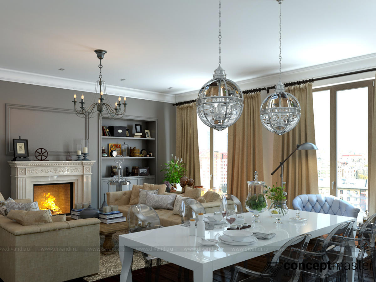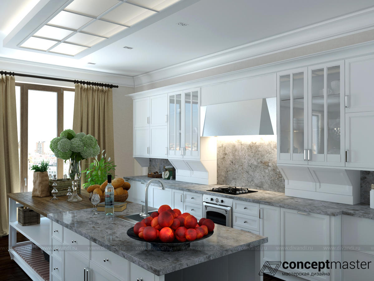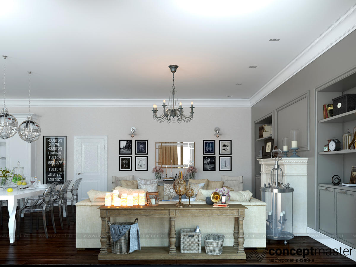 Тип проекта: квартира, загородный дом, кухня, гостиная