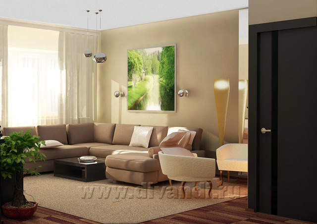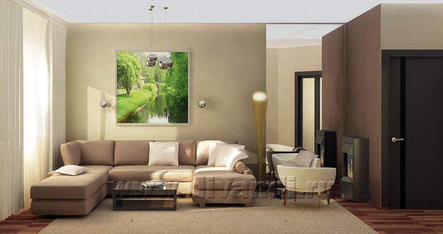 Гостиная в однокомнатной квартире для девушки, любящей уют и функциональность пространства. Гостиная получилась приятной и теплой.