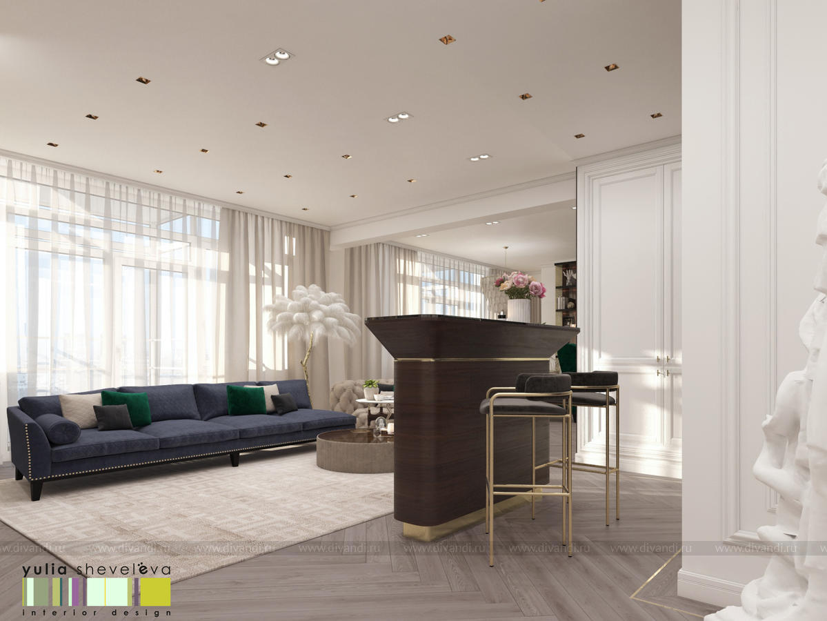 Дизайн интерьера квартиры для семьи с двумя детьми в эклектичном стиле, общей площадью 227 м².