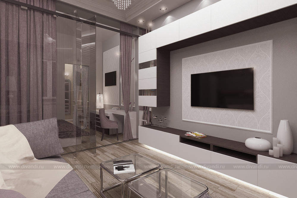 Небольшая студия для молодой девушки в классическом стиле. Из однокомнатной квартиры мы сделали гостиную, кухню, спальню и целый гардероб. Обилие света, потолочных декоров и лепнины, зеркал сделали квартиру нарядной, а высокие потолки добавили воздуха в помещение.