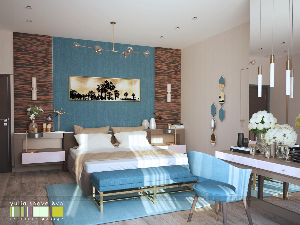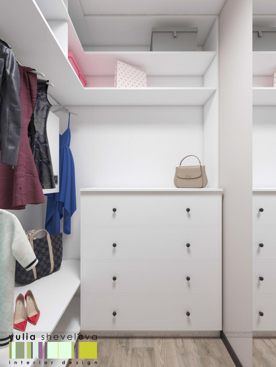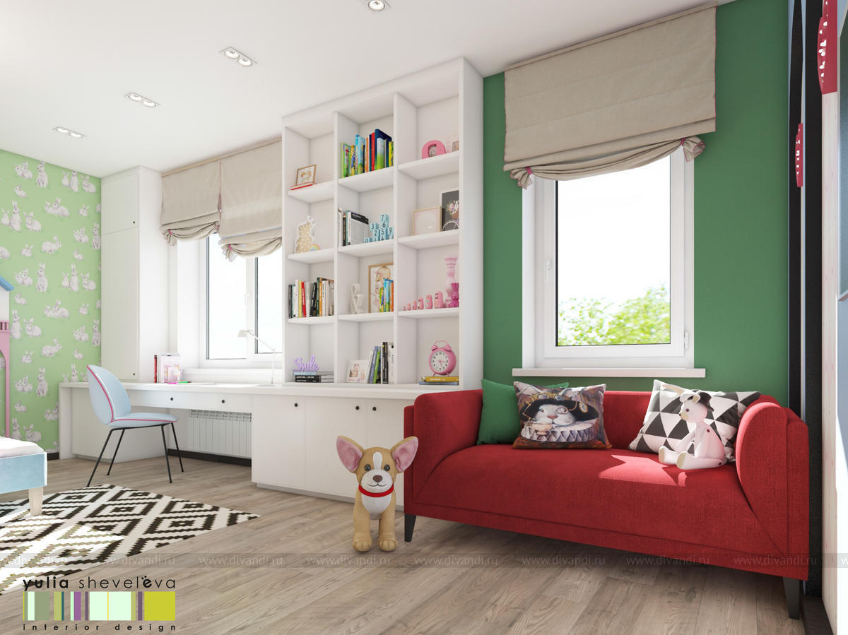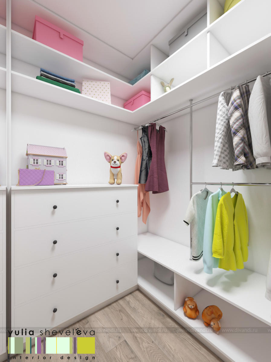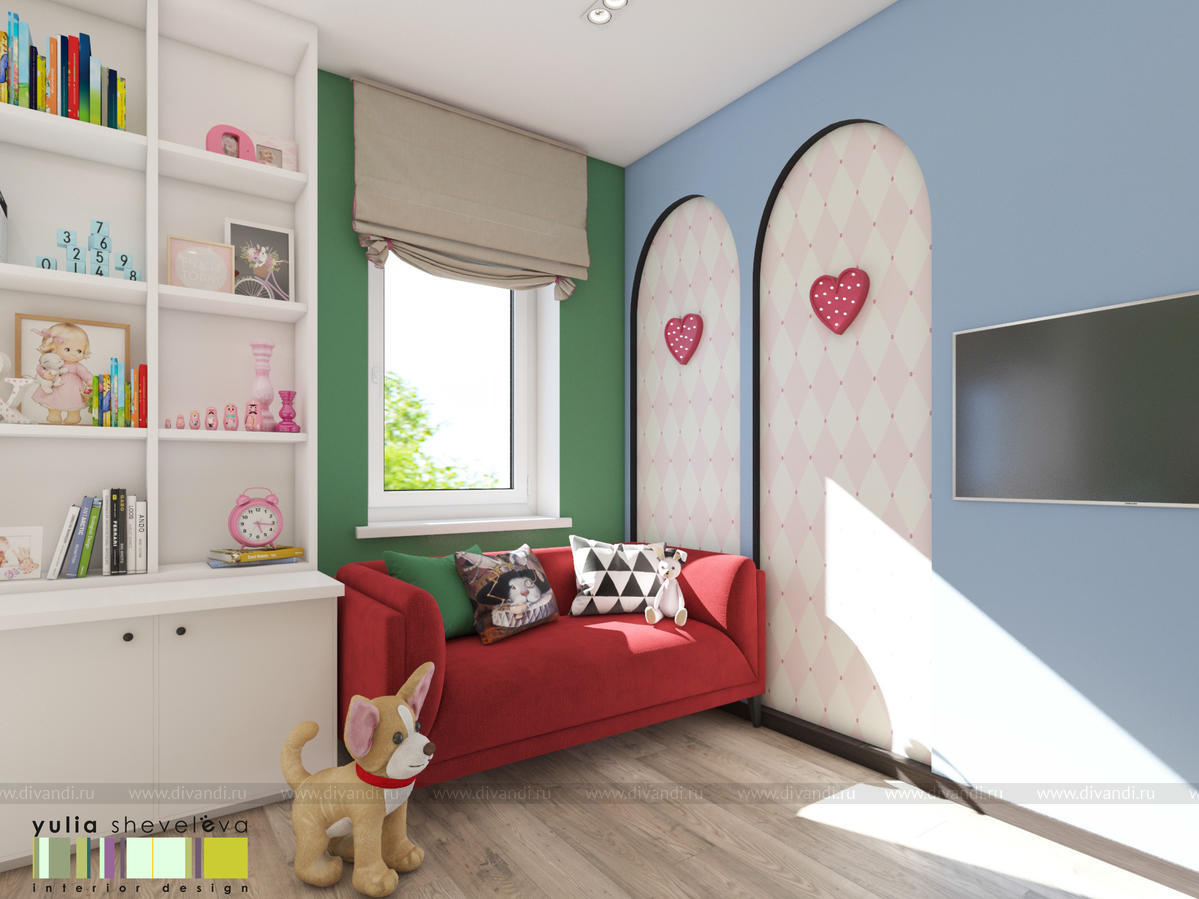 На втором этаже – главная спальня, комната старшей дочери, детская младшей дочери, санузел и ванная комната. При каждой комнате спроектирована отдельная гардеробная. Детская комната отличается по стилю от остального интерьера дома. Тема для детской – «Алиса в зазеркалье». Создан сказочный интерьер для юной принцессы.