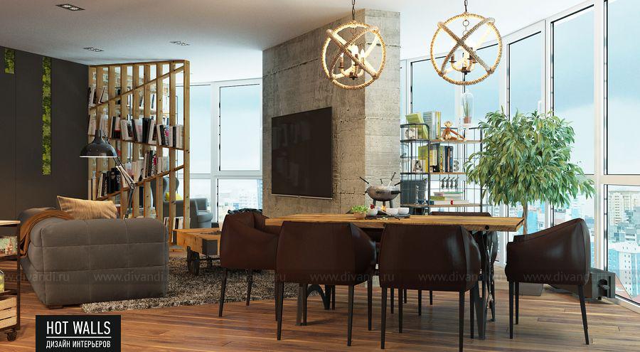 Тип проекта: квартира, кухня, гостиная