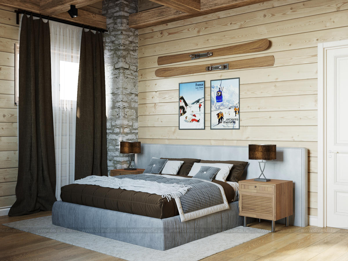 Тип проекта: загородный дом, спальня, кухня, ванная, гостиная