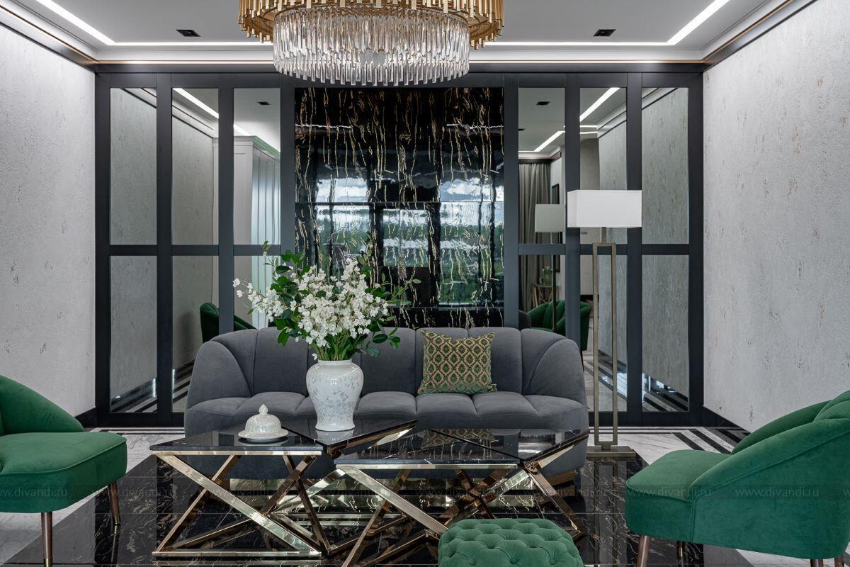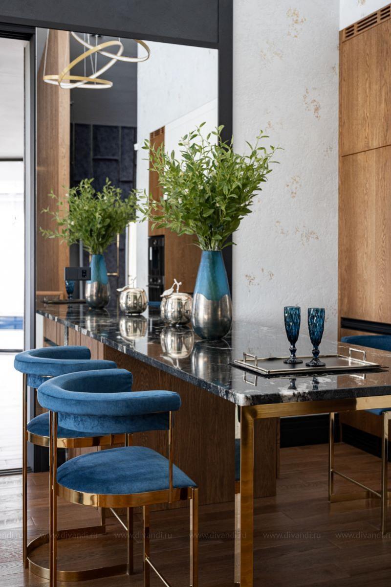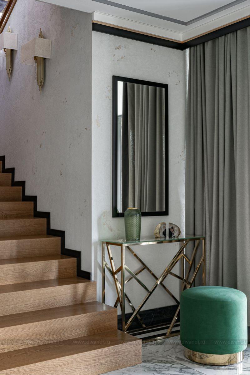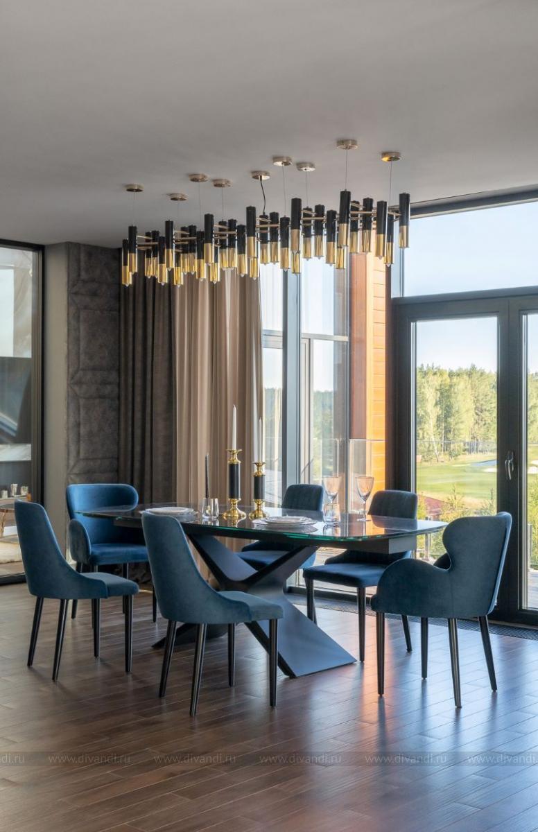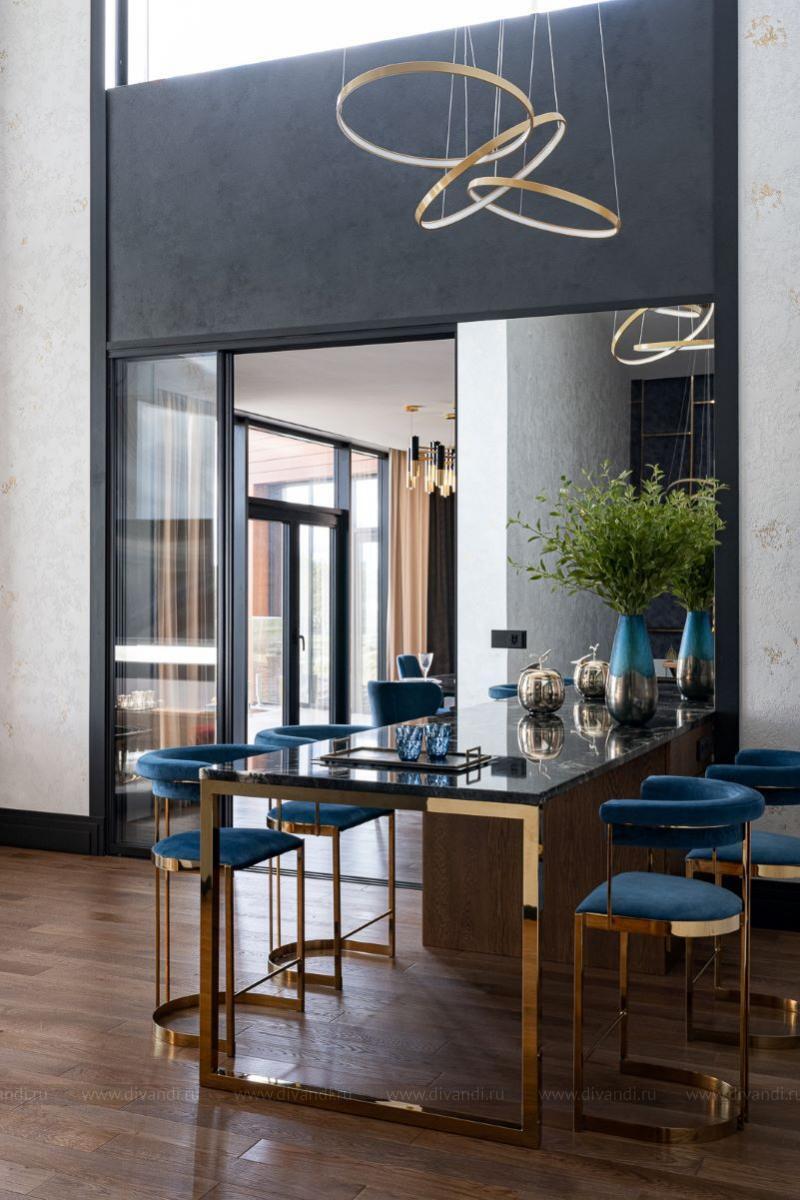 Дом для семьи из 3-х человек площадью 462 кв.м в Сысерте. Сдержанность, роскошь, многообразие текстур и фактур говорит об интерьере для ценителей! Тонко подобранные фактуры и текстуры, многообразие золотых элементов (без них роскошь не раскрыть), благородные оттенки зеленого, синего и дерева, а так же, в противовес - сдержанные цвета, такие как черный, белый и серый.