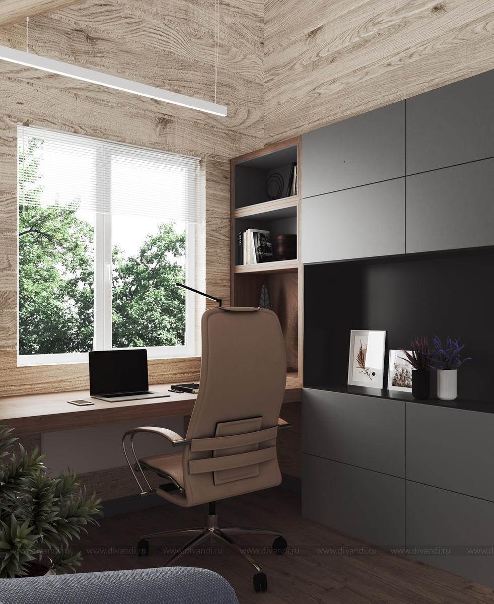 Первое, с чего мы начинаем работу – это анализ объекта. В данном случае – это дом из бруса. И, как правило, интерьер дома из бруса можно оформить в разных стилевых направлениях, но главная наша задача – это сохранить натуральную фактуру дерева и, конечно, стремиться к экологичности. Дерево – главный герой нашей истории. Где же еще дерево является главным героем? Первым на ум приходят живописные произведения Ивана Ивановича Шишкина. Отсюда и название нашего проекта – «Утро в сосновом лесу». Идея природных мотивов как нельзя лучше подходит этому дому. Именно в природе все смотрится органично, даже контрасты.