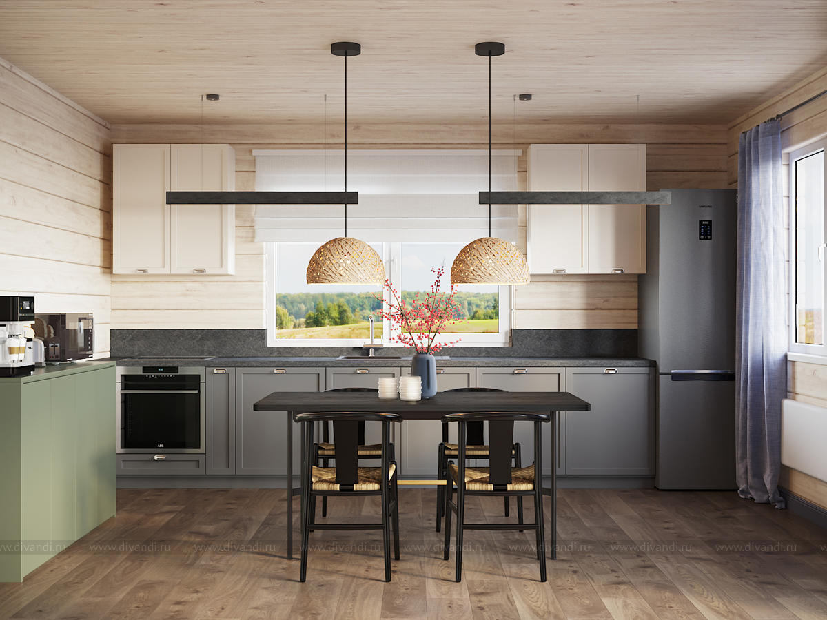 Тип проекта: загородный дом, спальня, кухня, ванная, гостиная