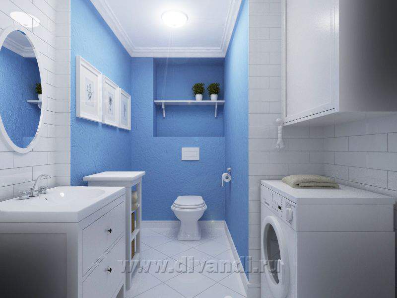 Существенным плюсом было то, что в квартире уже была снесена перегородка между кухней и гостиной. За счет уменьшения коридора были увеличены 2 санузла. Это позволило разместить в ванной комнате унитаз, раковину, а также большую ванну. Во втором санузле разместилась стиральная машина, унитаз и раковина. Дверь в ванную комнату была перенесена – теперь вход туда осуществляется не из коридора, как обычно, а из спальни.
