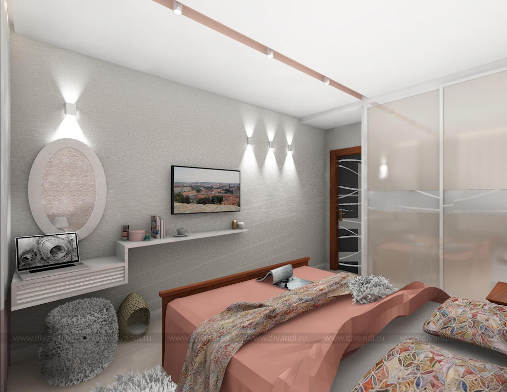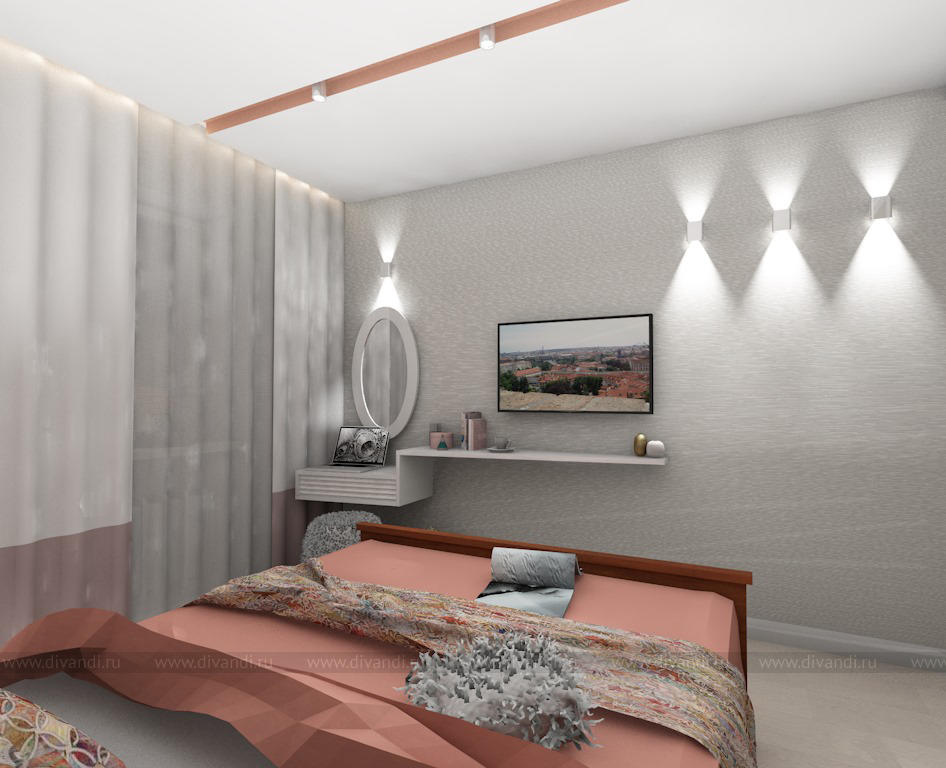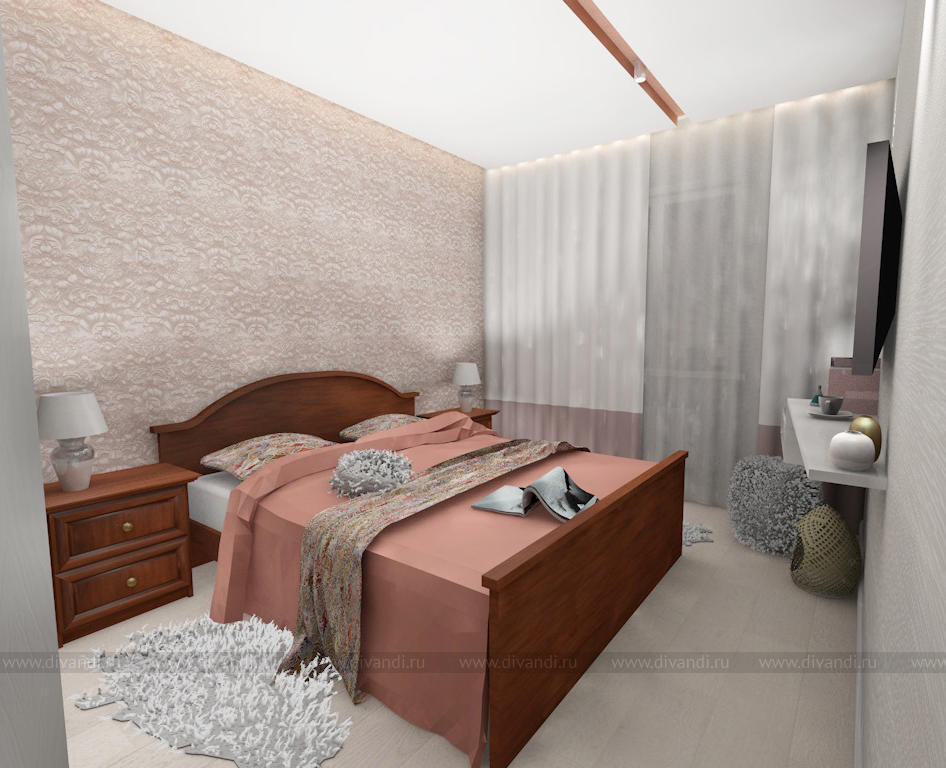Уютная спальня в коттедже. Коралловый вариант.