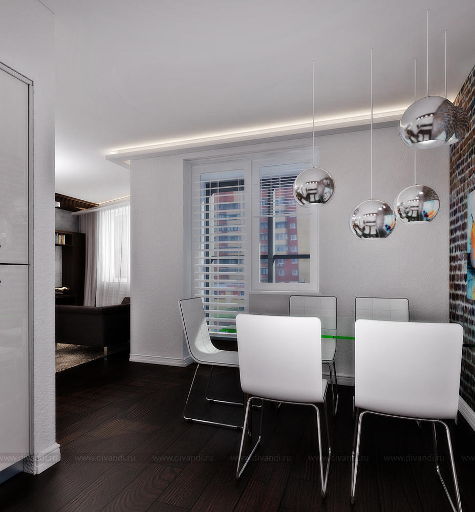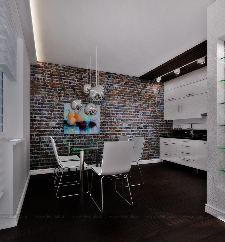 При проектировании интерьера главной задачей была совместить стиль Лофт с Функционализмом.