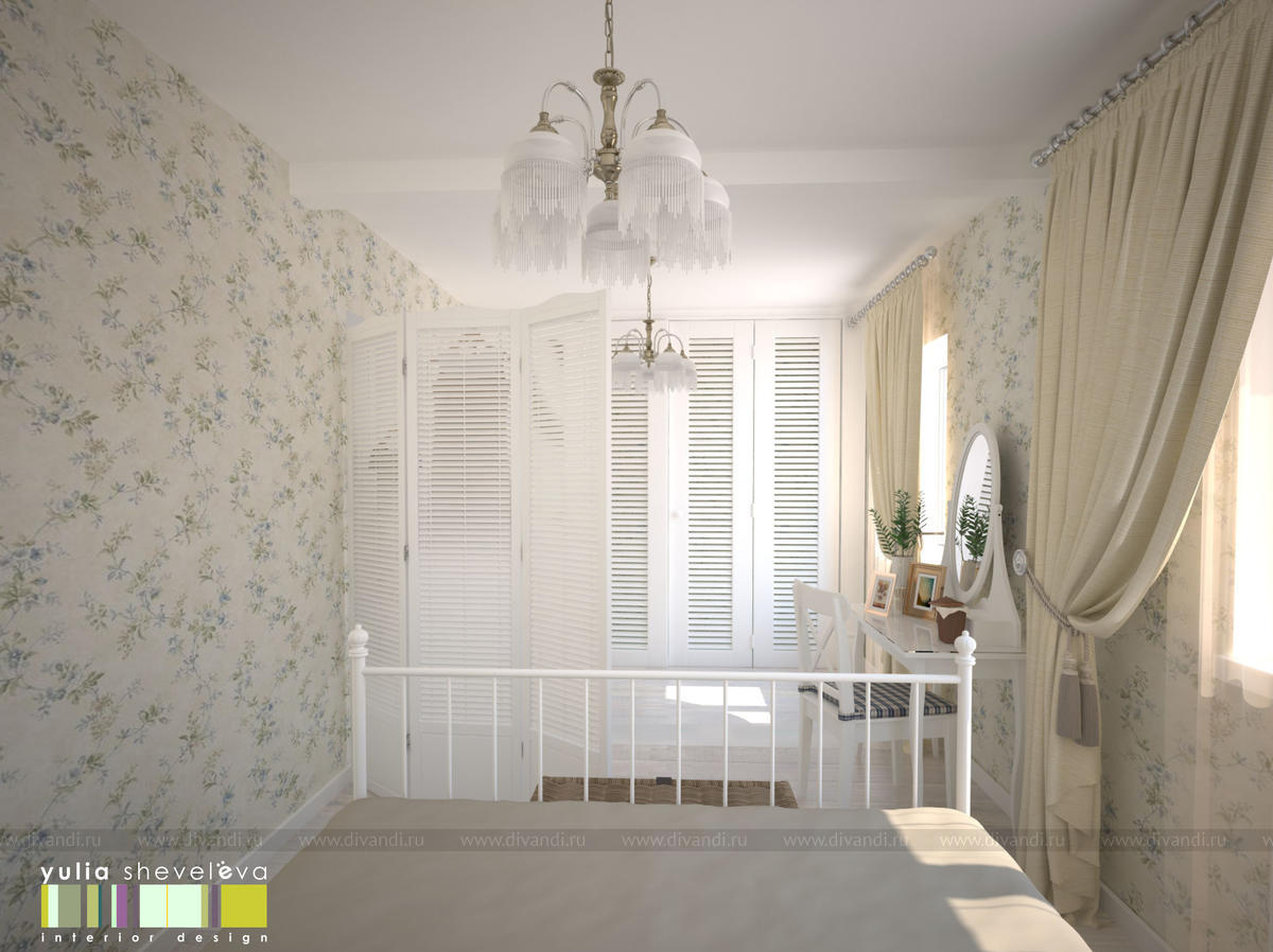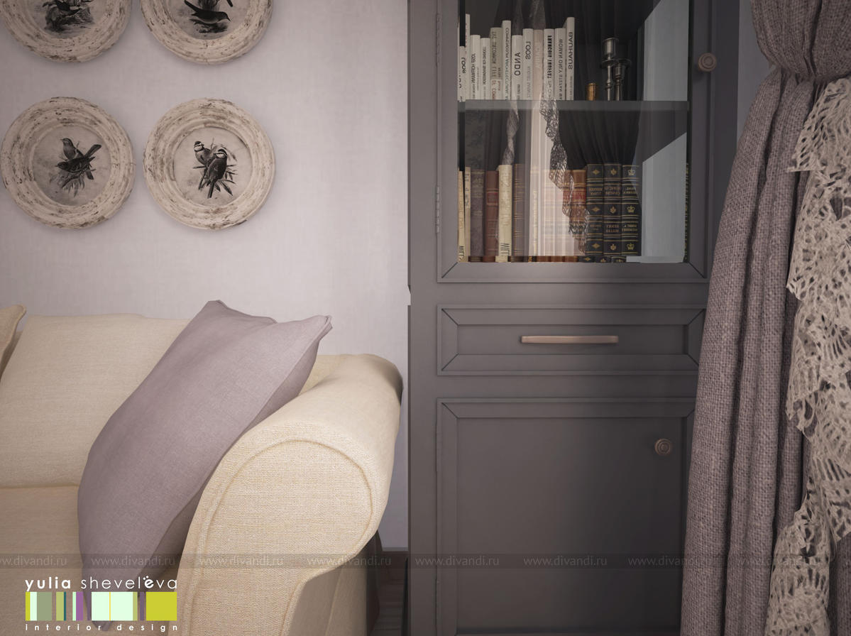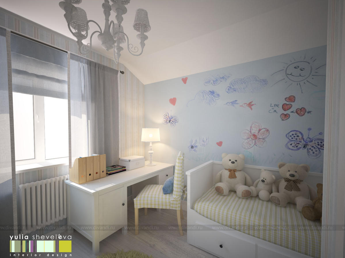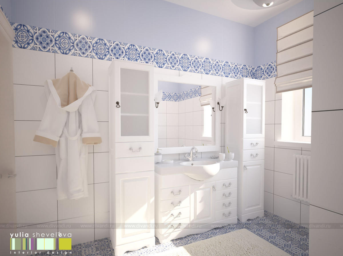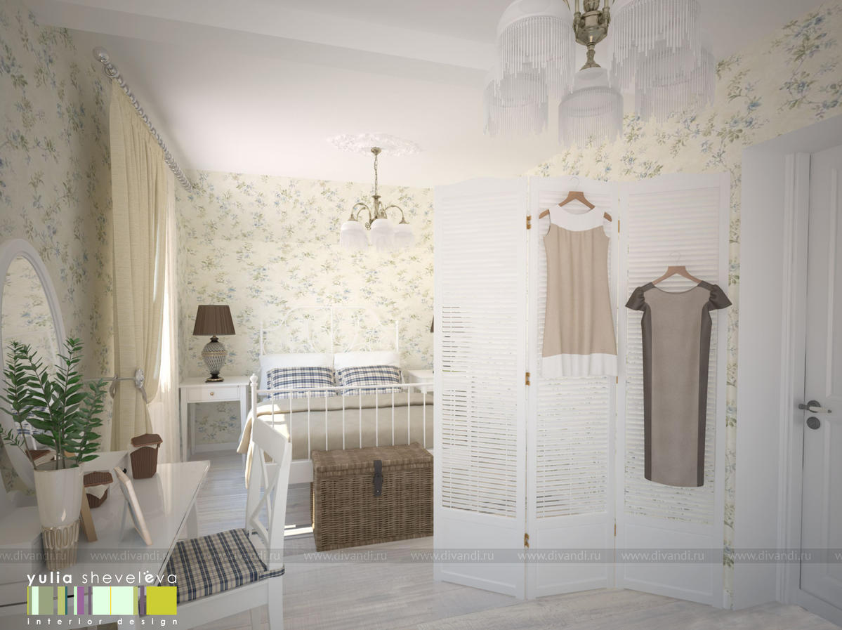 Проект небольшого загородного дома в г. Екатеринбурге для семейной пары и двух дочерей. Интерьер мы решили сделать в классической стиле, с элементами Шебби Шик. Многие предметы интерьера загородного дома – это старинные вещи клиентов, которые хранились в гараже. Часть из них оставили в первозданном виде, что-то переделали и преобразили. Так ,например, столик в кабинете на 1 этаже сделали из подстолья машинки Zinger.Цветовая гамма для интерьера дома была выбрана преимущественно в голубых тонах, в холле и гостиной использована покраска, сделаны вставки из обоев с цветочным рисунком. Для младшей дочери интерьер комнаты выполнен более легкий и воздушный, с белой деревянной мебелью, уютными плетеными светильниками. Для старшей дочери интерьер получился более яркий и насыщенный. Слева от входа – стена в графитовой черной краске, рядом - система хранения из дерева и яркий желтый диван.Спальня родителей выдержана в общем стиле всего интерьера: на стенах – цветочные обои, кованая кровать и белая классическая деревянная мебель.