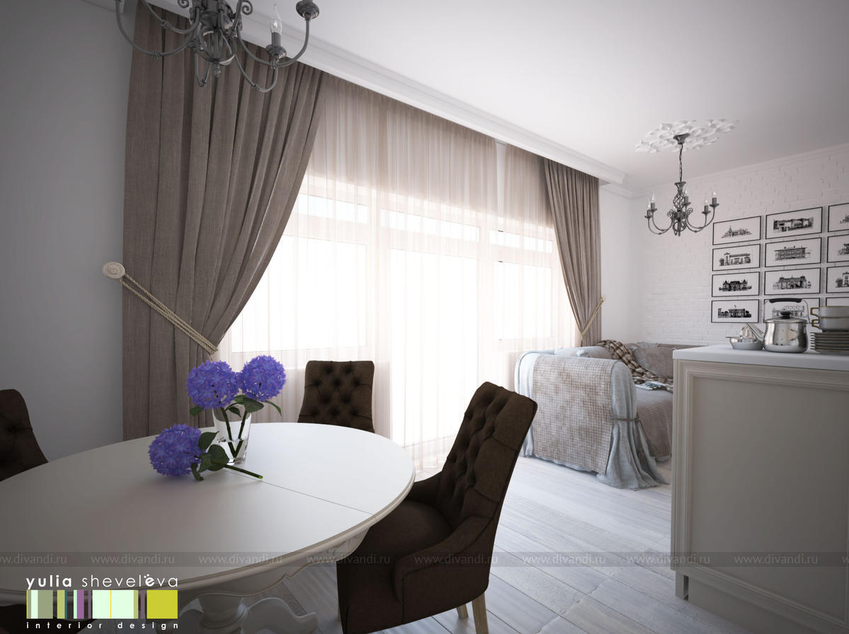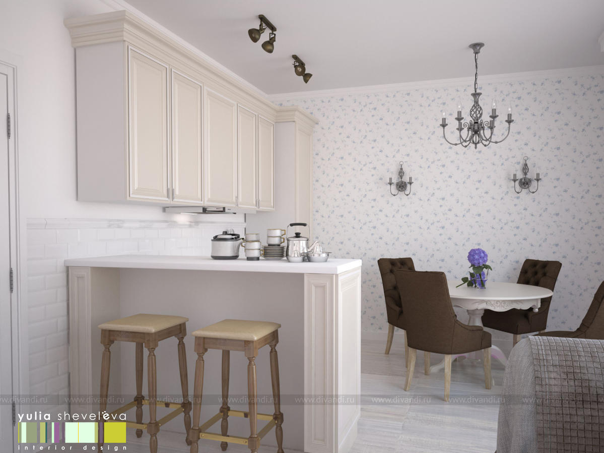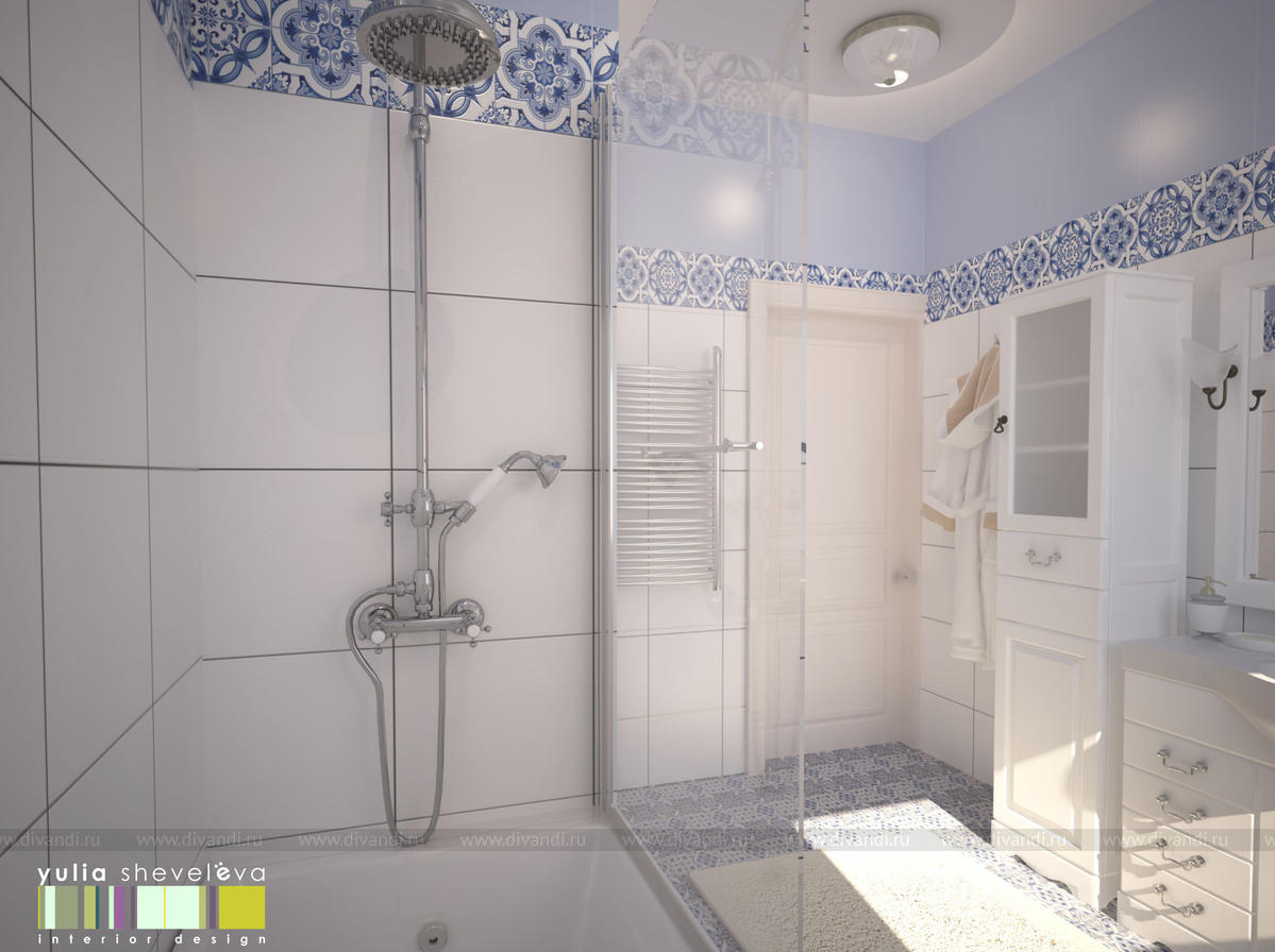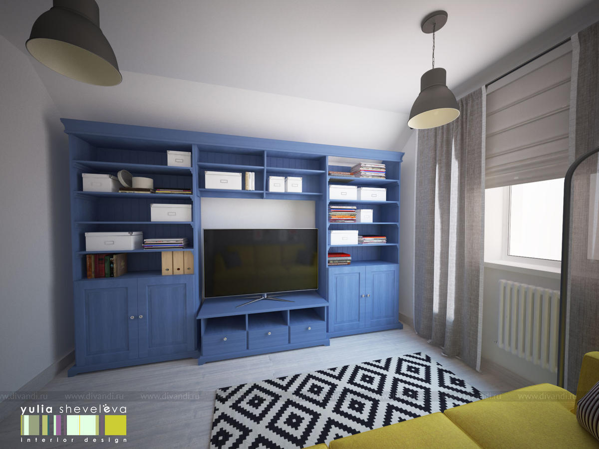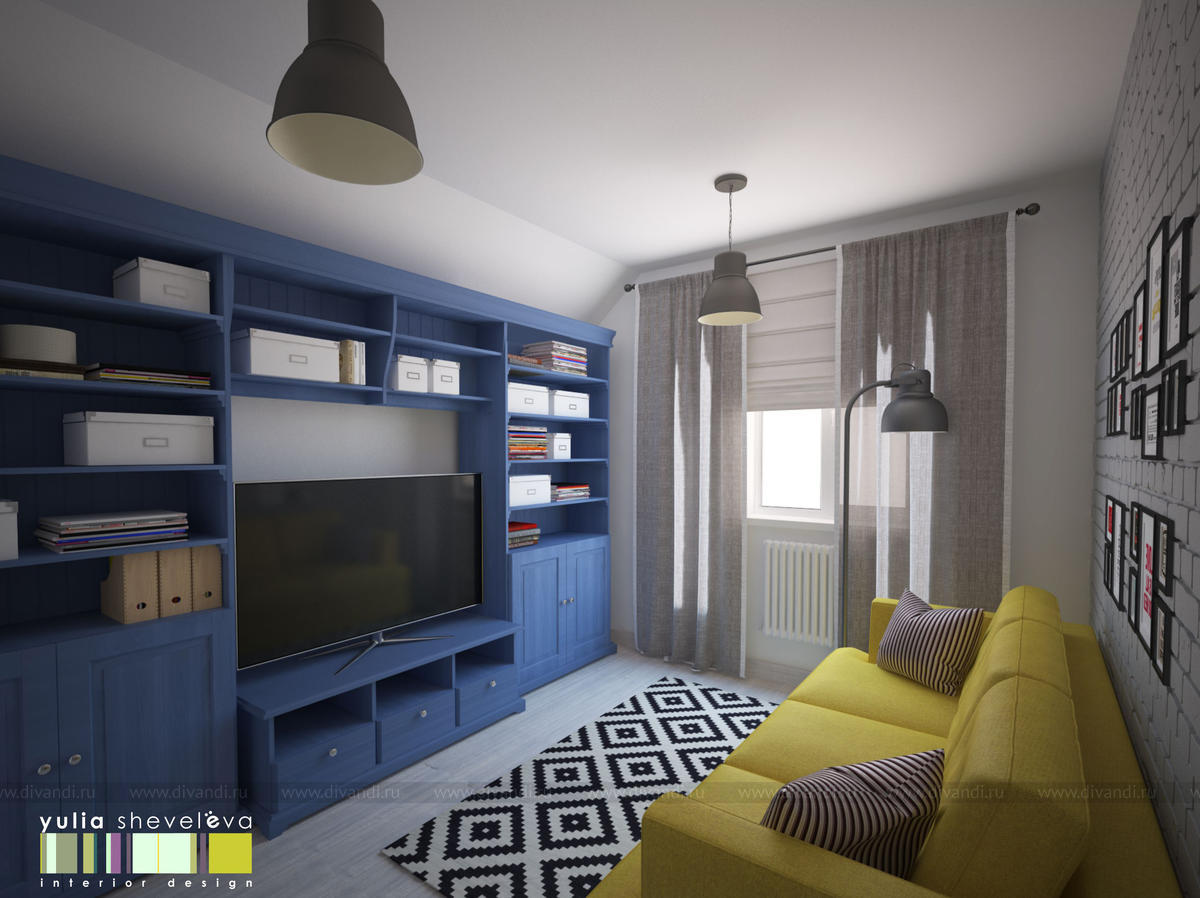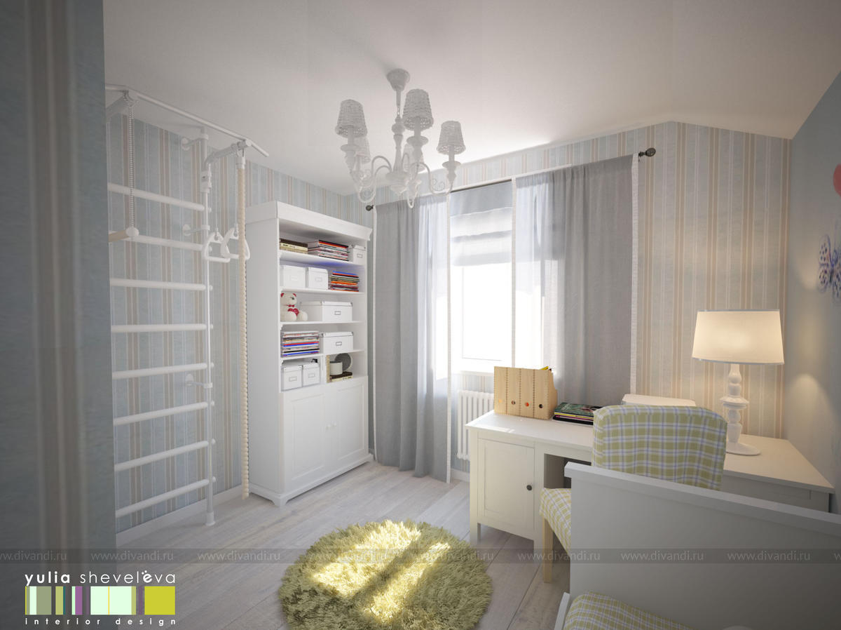 Проект небольшого загородного дома в г. Екатеринбурге для семейной пары и двух дочерей. Интерьер мы решили сделать в классической стиле, с элементами Шебби Шик. Многие предметы интерьера загородного дома – это старинные вещи клиентов, которые хранились в гараже. Часть из них оставили в первозданном виде, что-то переделали и преобразили. Так ,например, столик в кабинете на 1 этаже сделали из подстолья машинки Zinger.Цветовая гамма для интерьера дома была выбрана преимущественно в голубых тонах, в холле и гостиной использована покраска, сделаны вставки из обоев с цветочным рисунком. Для младшей дочери интерьер комнаты выполнен более легкий и воздушный, с белой деревянной мебелью, уютными плетеными светильниками. Для старшей дочери интерьер получился более яркий и насыщенный. Слева от входа – стена в графитовой черной краске, рядом - система хранения из дерева и яркий желтый диван.Спальня родителей выдержана в общем стиле всего интерьера: на стенах – цветочные обои, кованая кровать и белая классическая деревянная мебель.