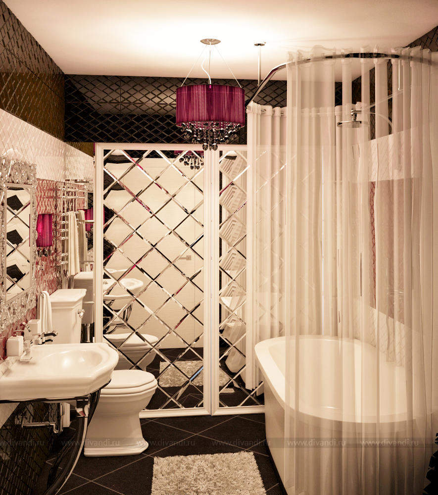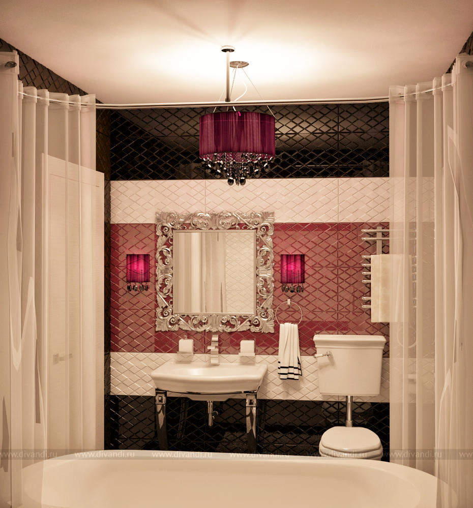 Ванная комната с стиле ардеко с отдельностоящей ванной.