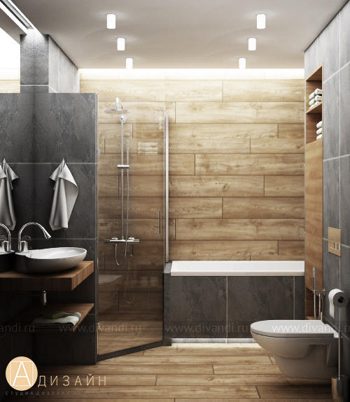 Проект маленькой ванны в современном стиле, с элементами лофта.