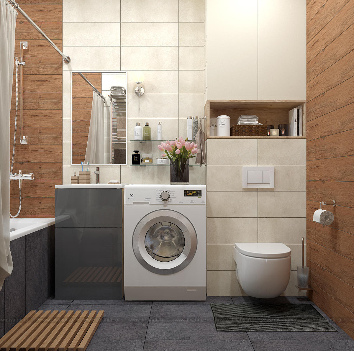Ванная комната в современном эко-стиле. Обилие натуральных текстур дерева и нейтральных песочных оттенков делают интерьер нашей ванной комнаты свежим, теплым и гармоничным!
