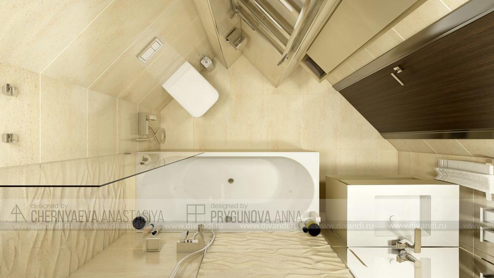 Проект ванной комнаты с использование натуральных текстур испанской плитки Porcalanosa коллекция Madagaskar