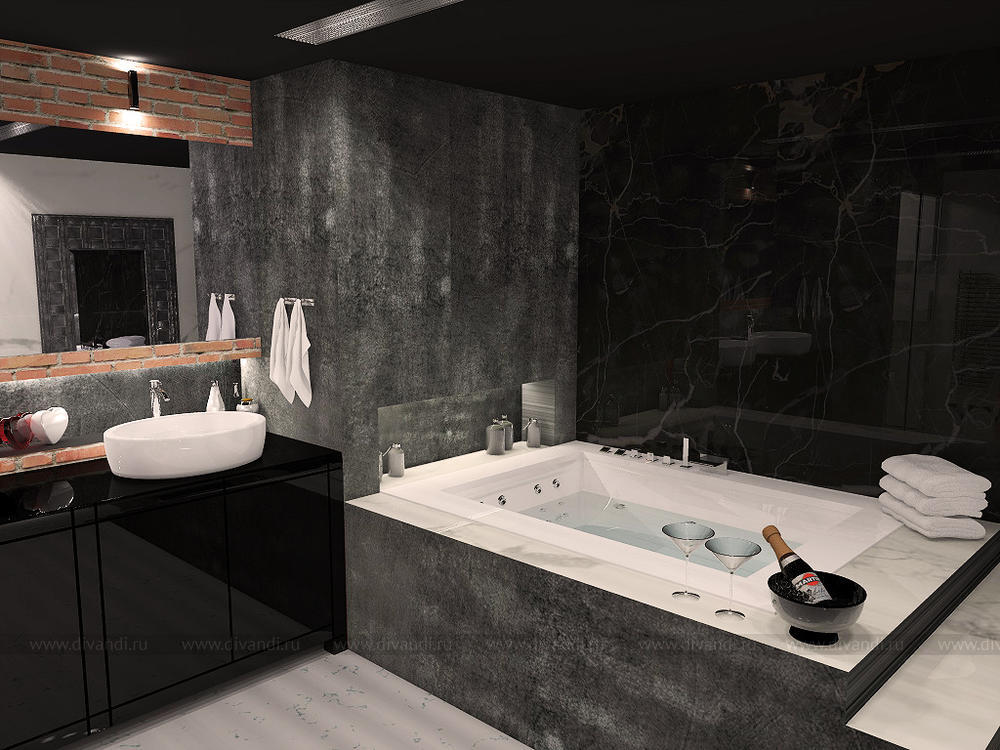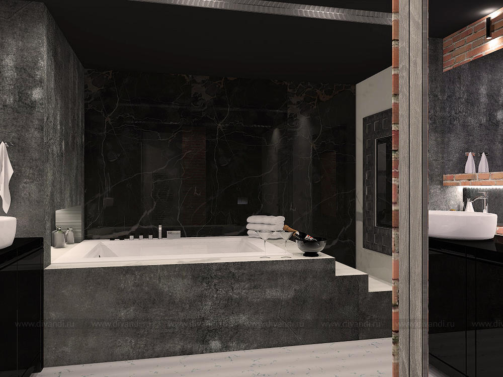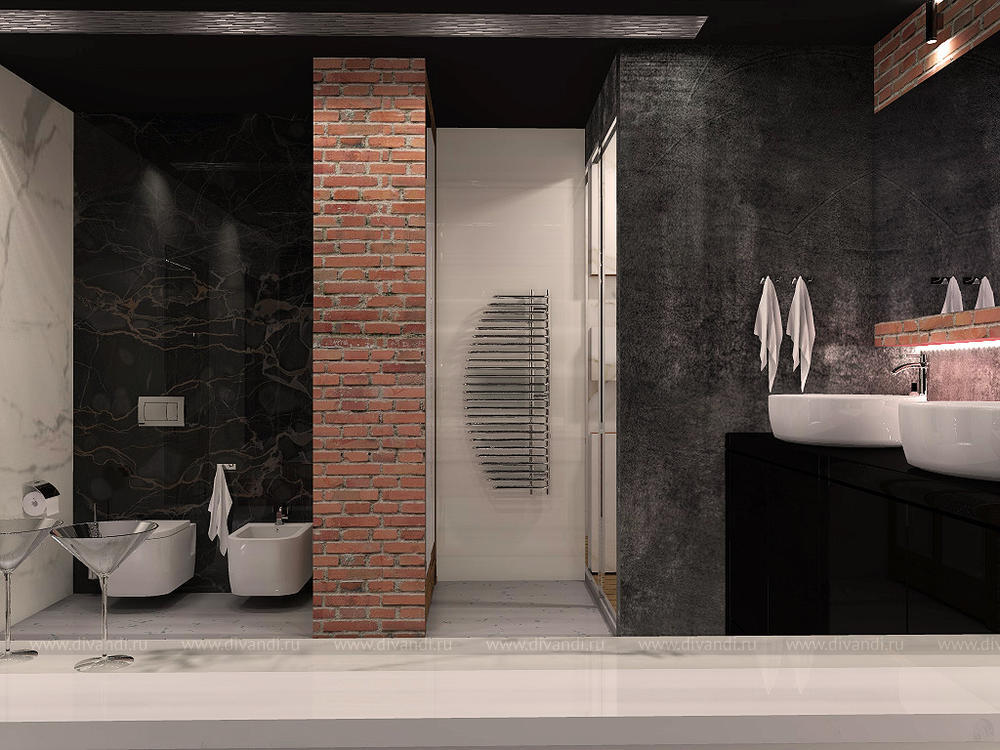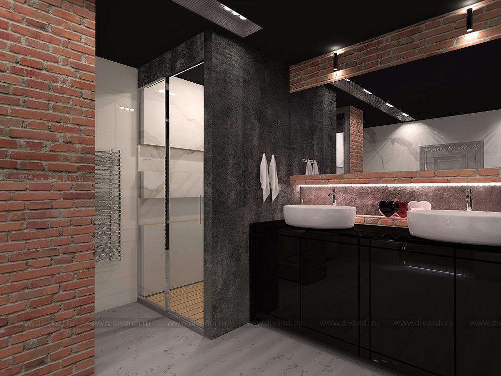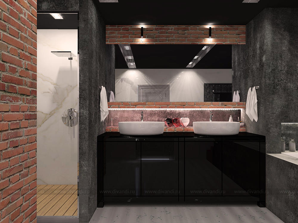 Ванная комната хозяев в стиле лофт в трехкомнатной квартире ЖК Крыловъ г. Екатеринбург