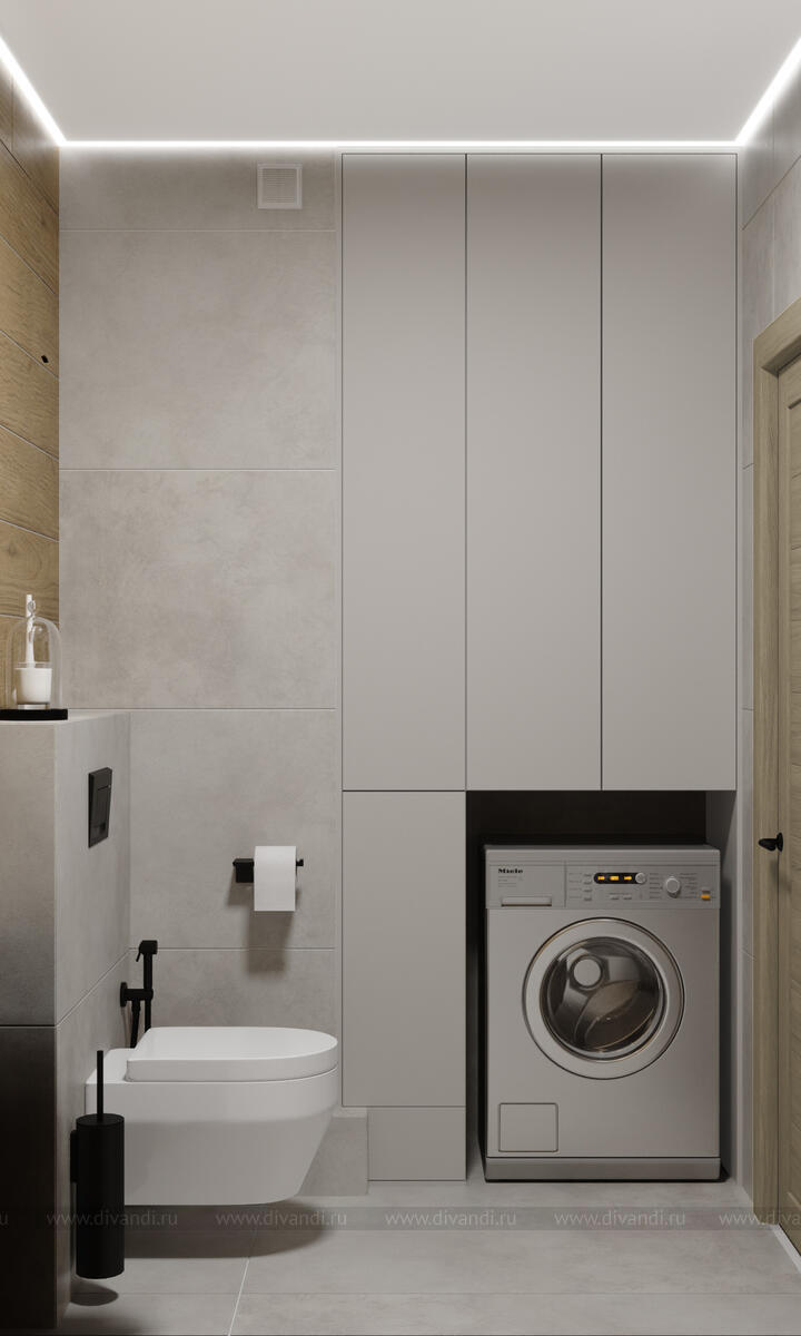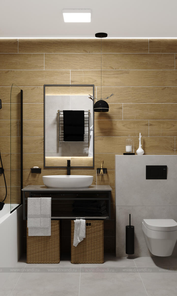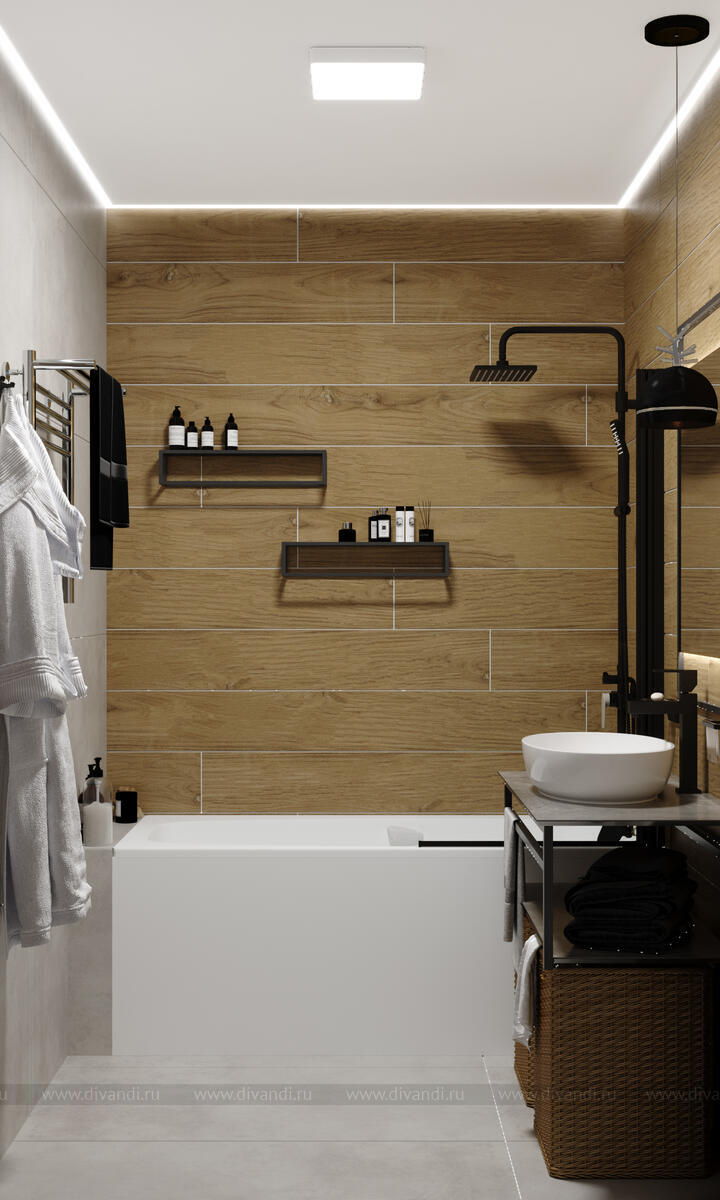 Ванная на сочетании фактур дерева и "мягкого" бетона