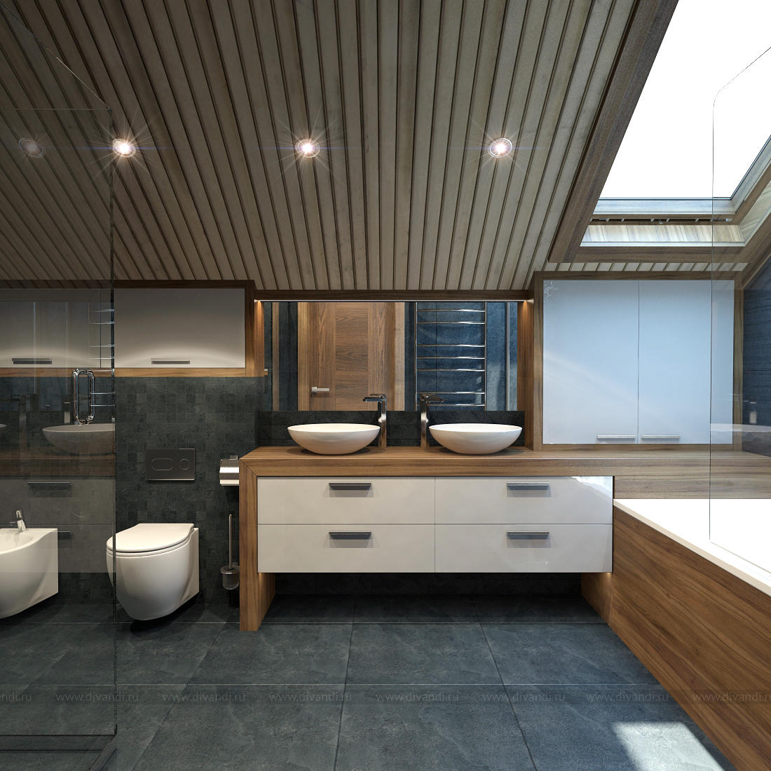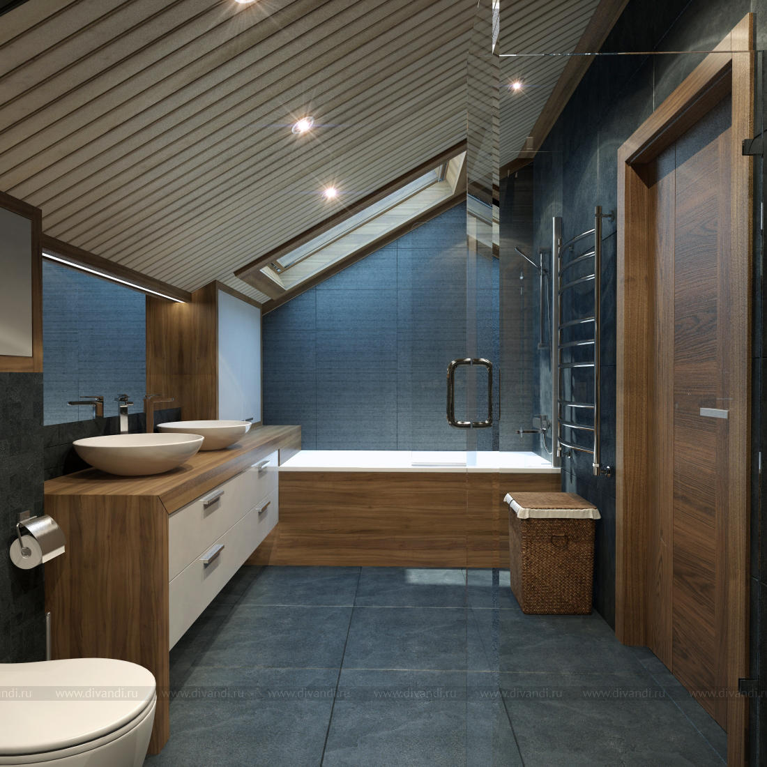 Ванная с мансардным потолком