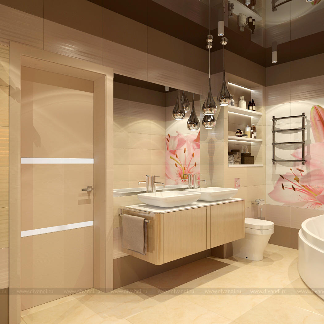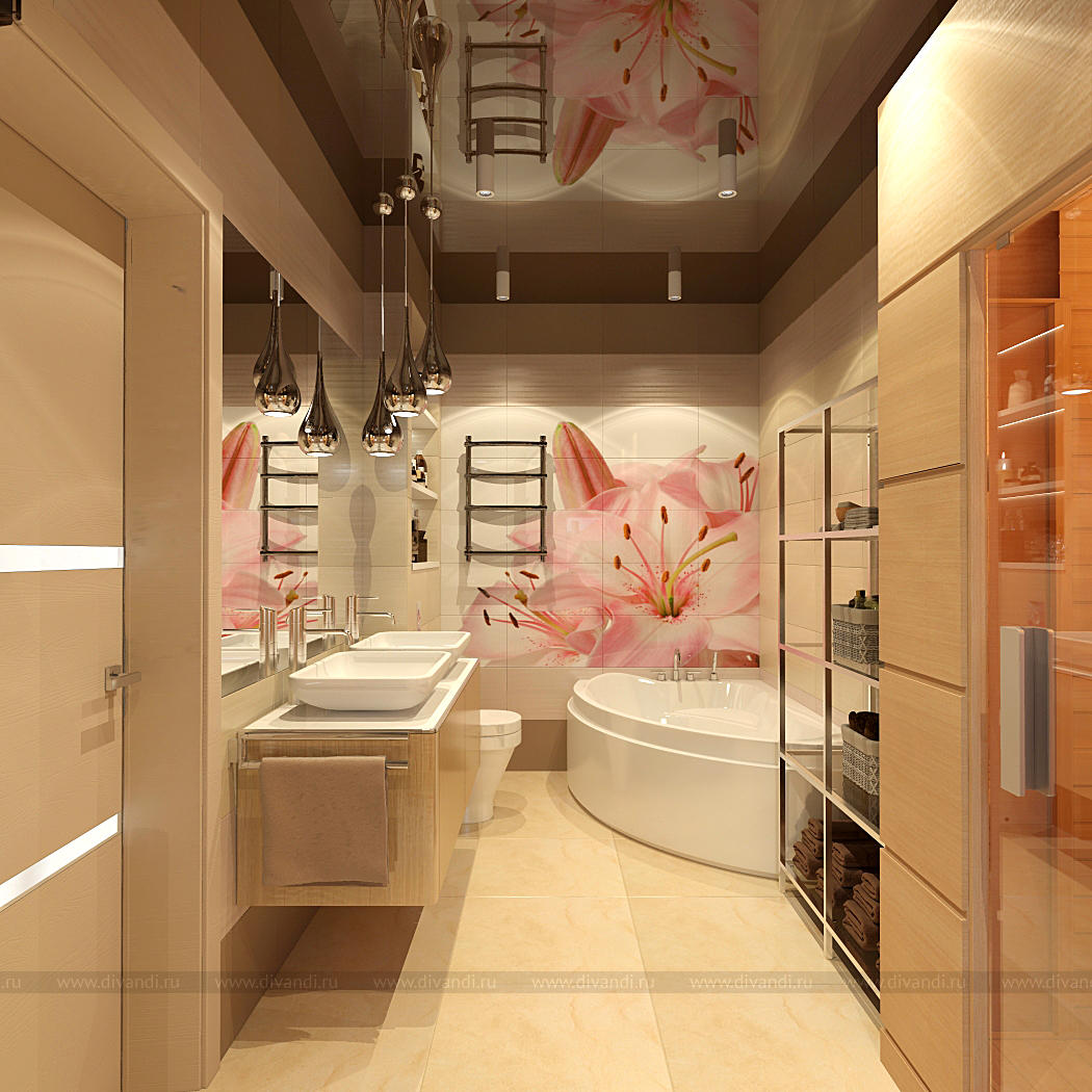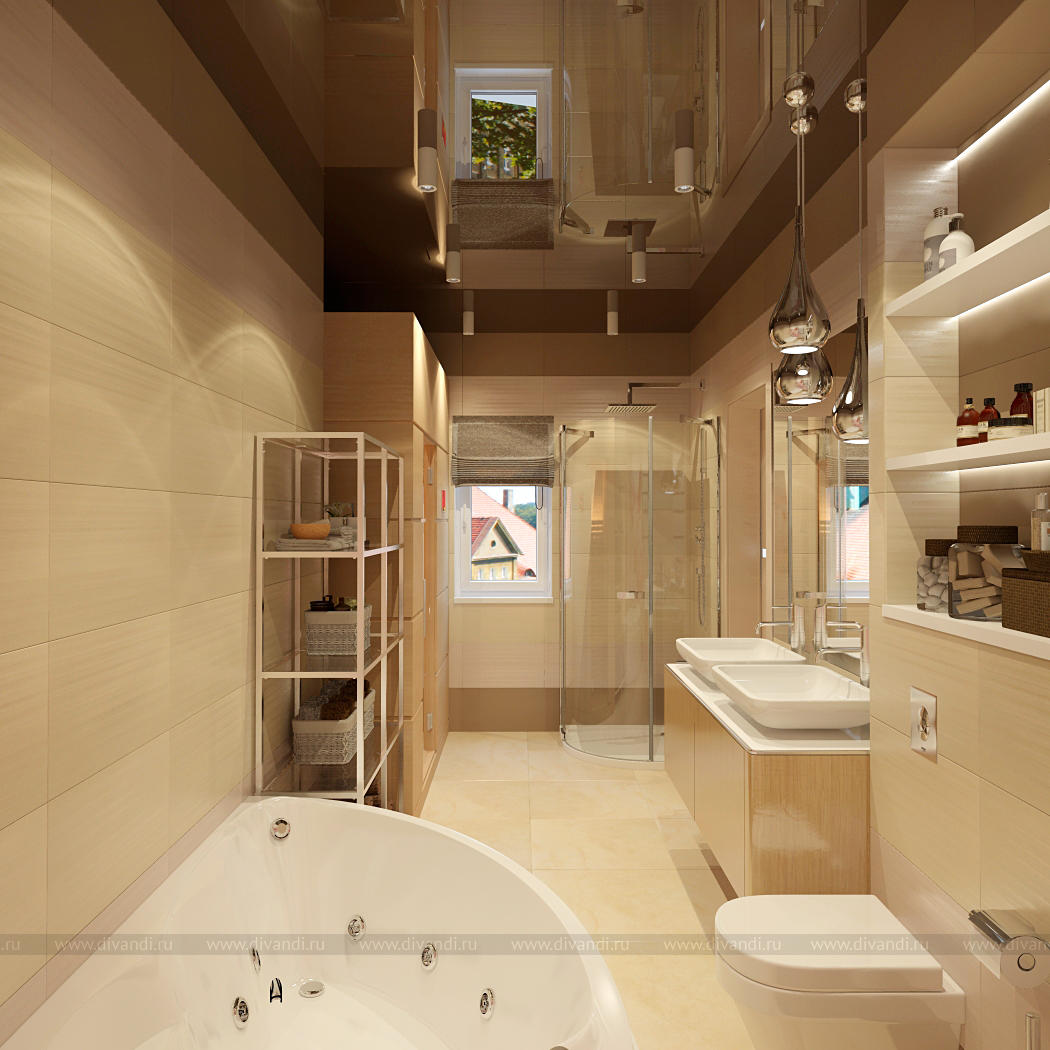 Дизайн ванной комнаты с сауной в загородном доме, московская область