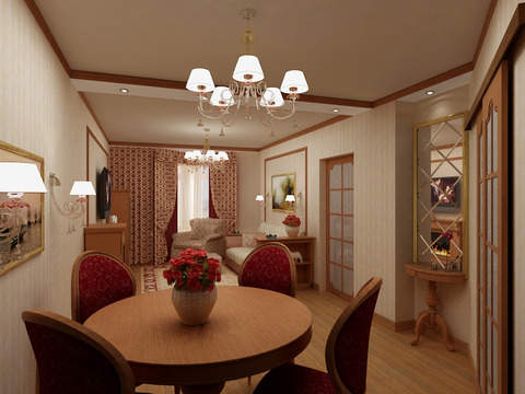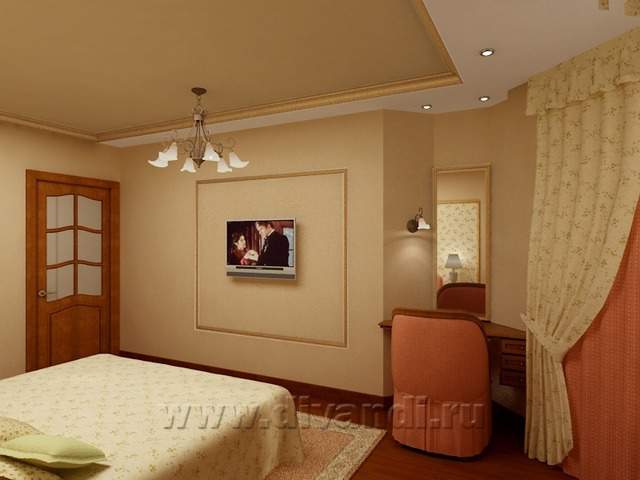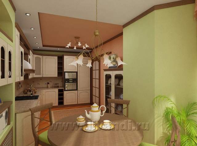 В целом квартира выполнена в классических мотивах, но в каждом помещении общему решению заданы индивидуальные мотивы различных стилей. Так использование золота в декоре, а также соответствующий подбор светильников, мебели, тканей на портьеры и обивки задают прихожей, холлу, гостиной парадное настроение. Кабинет выполнен в традиционном классическом решении. В спальне звучат английские мотивы, а уютная и просторная кухня, таит в себе нотки провансальского стиля.