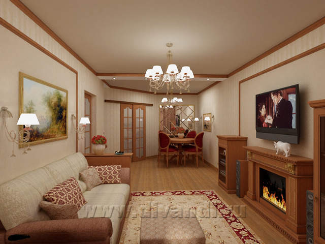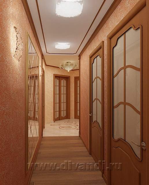 Зеркала и функционально размещенная подсветка в интерьерах гостиной и коридора – играют на зрительное расширение пространство, придают дополнительной глубины и нивелируют недостатки планировки.