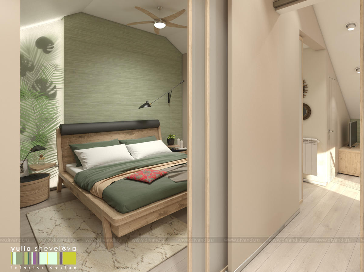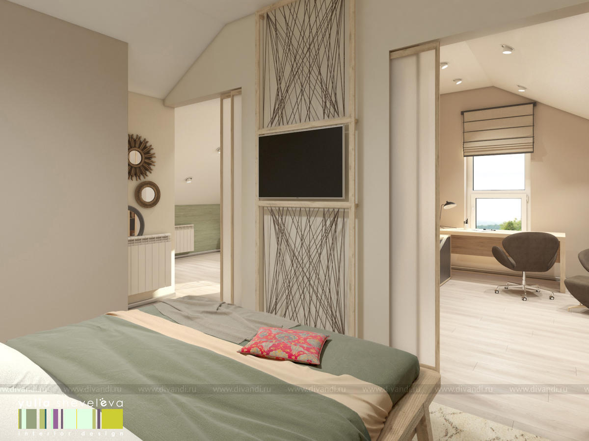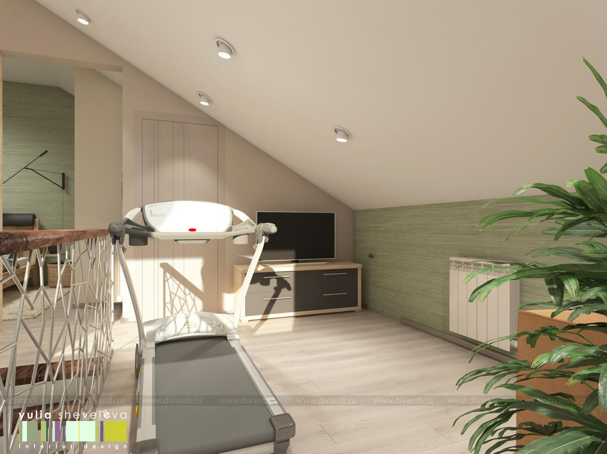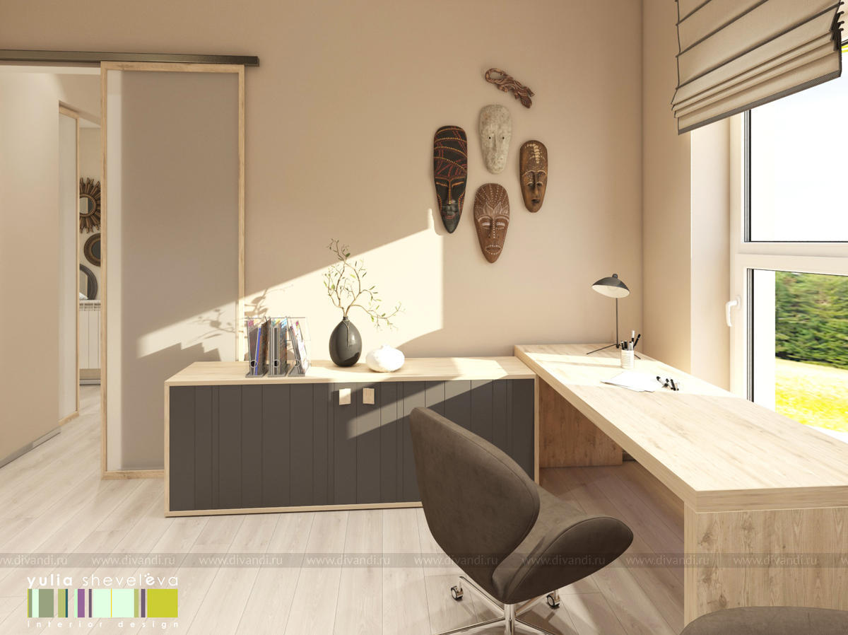 Тема этники любима и дорога хозяину дома. Поэтому по его просьбе, мансардный этаж оформлен в этом направлении. В последствии, на стенах и на полу появятся необычные вещи из личной коллекции хозяина, которые он привозит из разных уголков земного шара