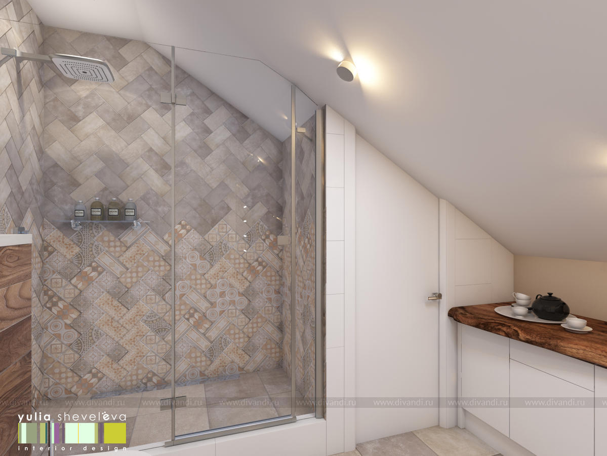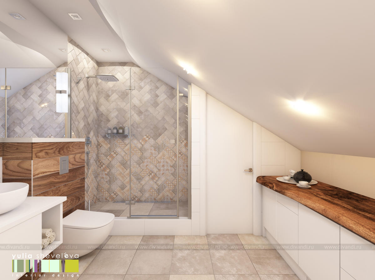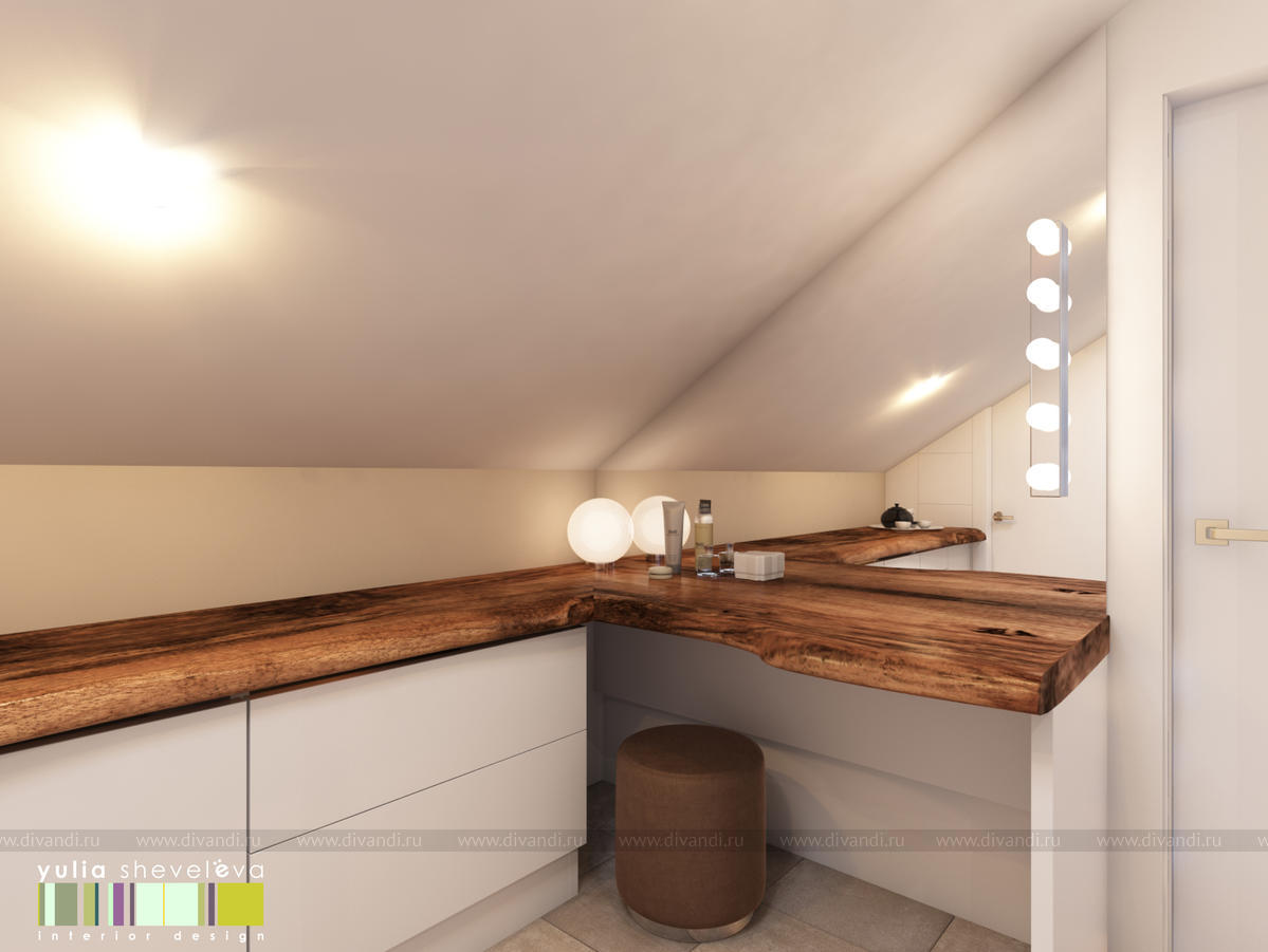 Сложность работы над проектом заключалась в в том, что до меня уже работал дизайнер, и была проложена электрика, продуман функционал. Но в ходе работы выяснилось, что многие уже сделанные решения не устраивали хозяев, и пришлось все переделать. Например, был полностью перекроен мансардный этаж, изменена электрика.