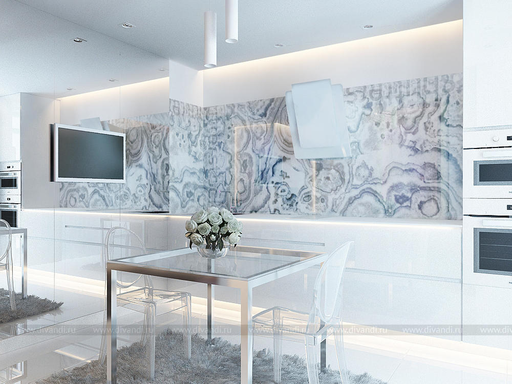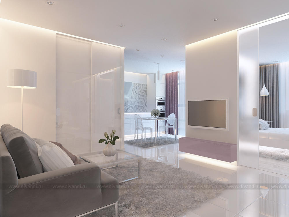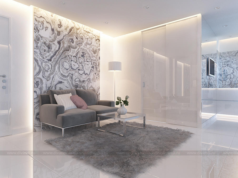 Интерьер однокомнатной квартиры площадью 49 кв.м. получился легким и светлым, благодаря обилию зеркал, подсветки, а также глянцевых и полированных поверхностей. Оригинальные текстуры, продуманный свет, красивые цвета делают интерьер лаконичным и легким. Основная идея заключается в том, чтобы создать интерьер, который, спустя годы, не надоест. Мы создали самодостаточный фон, который в разные периоды жизни заказчица сможет дополнять декором разных цветов и таким образом привносить в дом новое настроение. При этом она получит массу эмоций от творческого процесса и от результата.