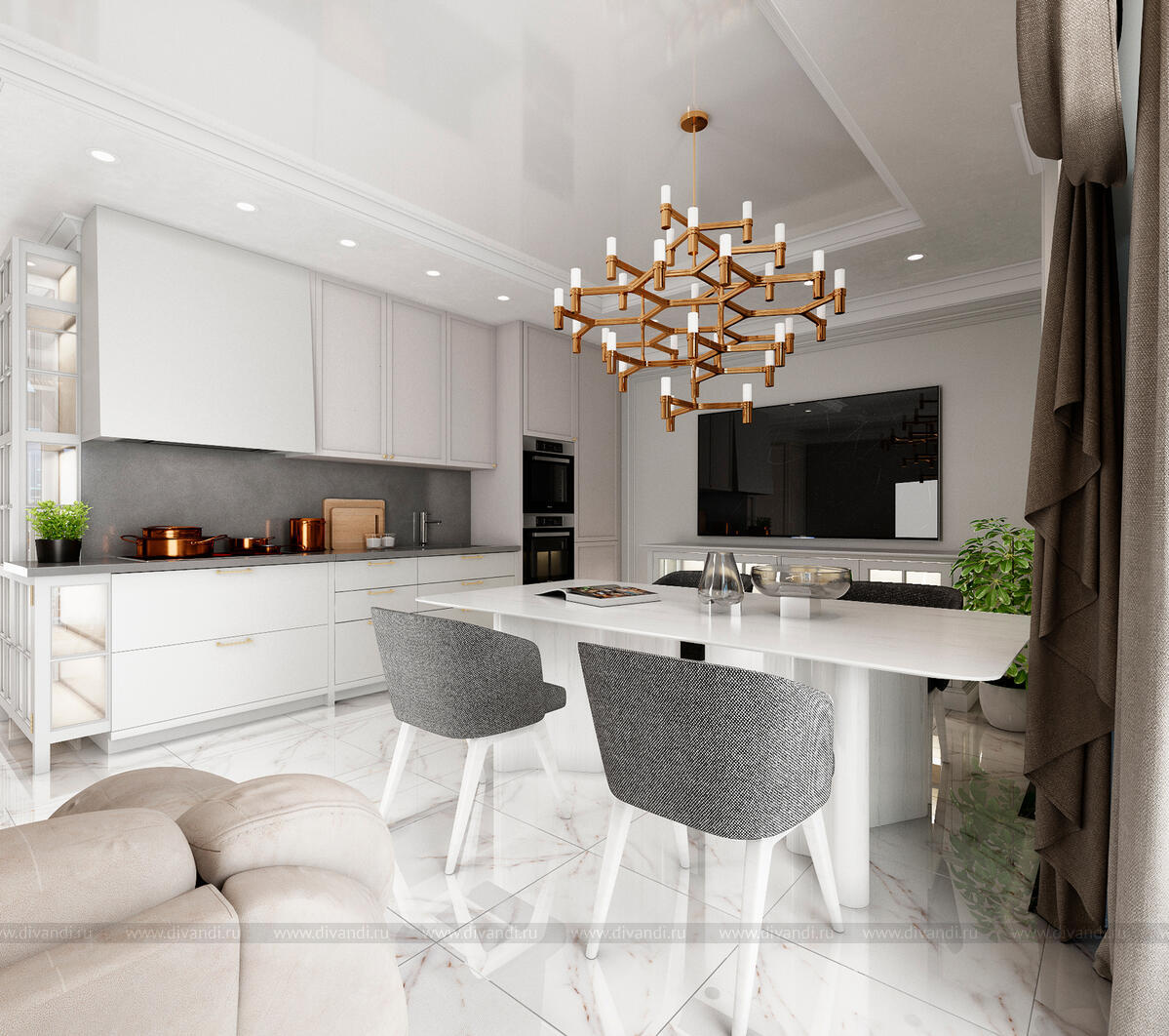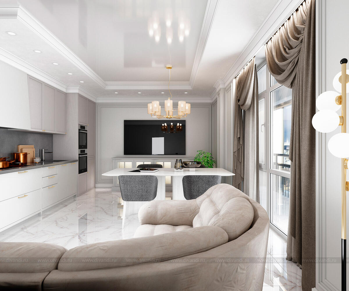 Тип проекта: квартира, кухня, гостиная