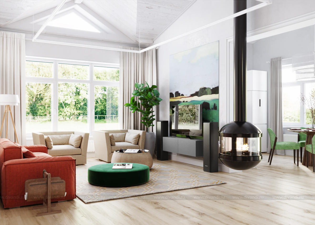 Наши заказчики давно мечтали о своем доме за городом, в окружении природы, поэтому концепция интерьера стала гармоничным продолжением этой мечты. Впустить природу в дом, созерцая ее красоту и совершенность.