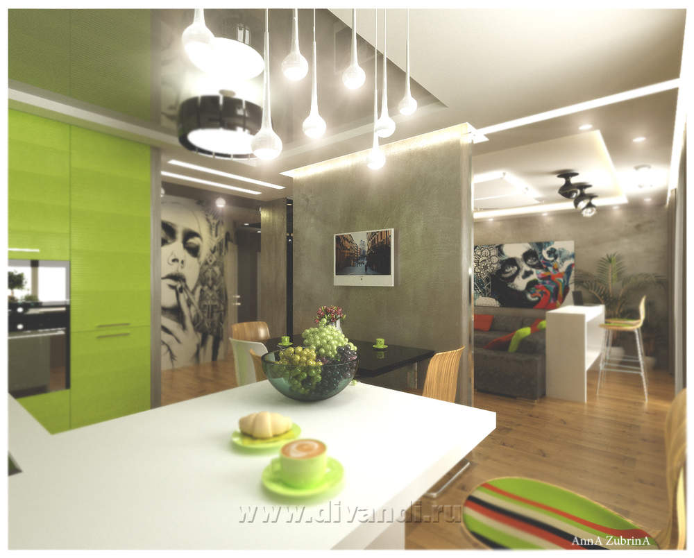 Дизайн квартиры 78 кв.м. Заказчица-молодая девушка, юрист, любящая экстрим и татуировки. Вот такая жгучая смесь!Интерьер полностью пришелся ей по вкусу и образу жизни. Небольшая кухня-столовая, просторная гостиная с электро камином,яркие цвета, постеры, продуманное освещение, балкон для кальян пати, большая гардеробная и спальня, где можно отдохнуть от всего этого. Но перед этим шла серьезная работа по планировке и расстановке мебели, для того чтобы квартира была функциональной и комфортной.