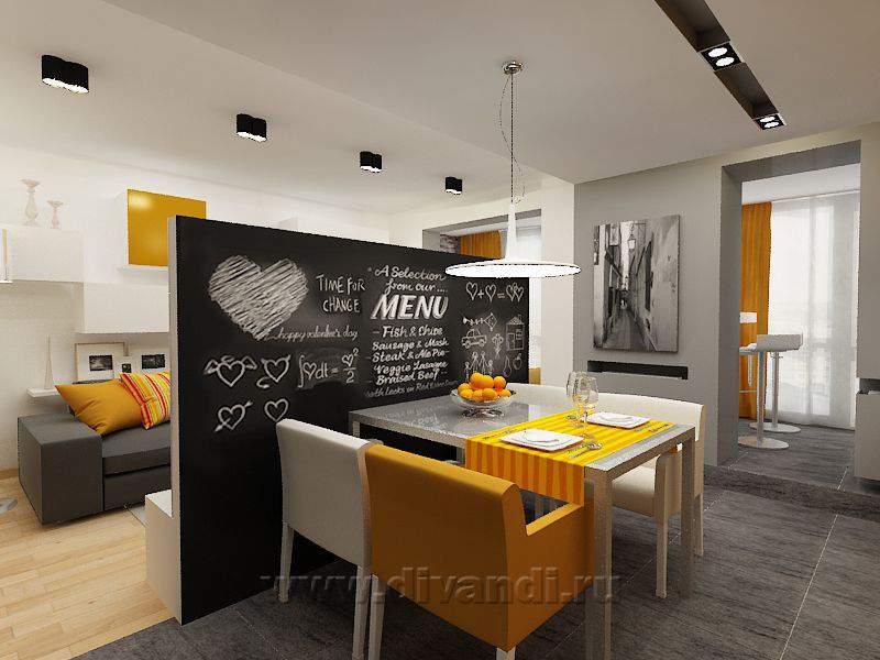 Идея этого проекта заключалась в том, чтобы создать современный и функциональный интерьер. Цветовое решение было задано существующим ламинатом и дверями. Основные цвета в интерьере квартиры - это белый, оттенки серого и оранжевый