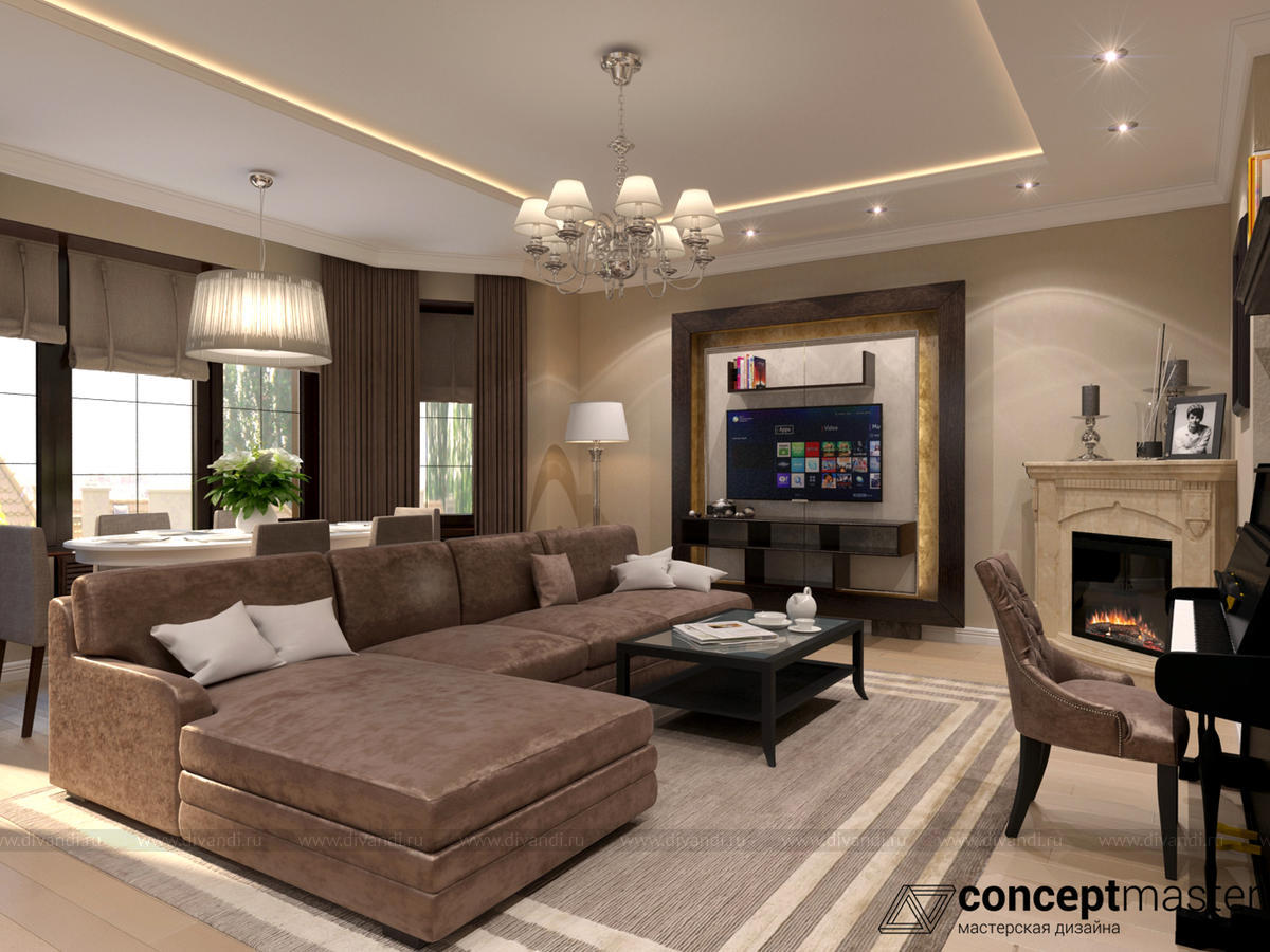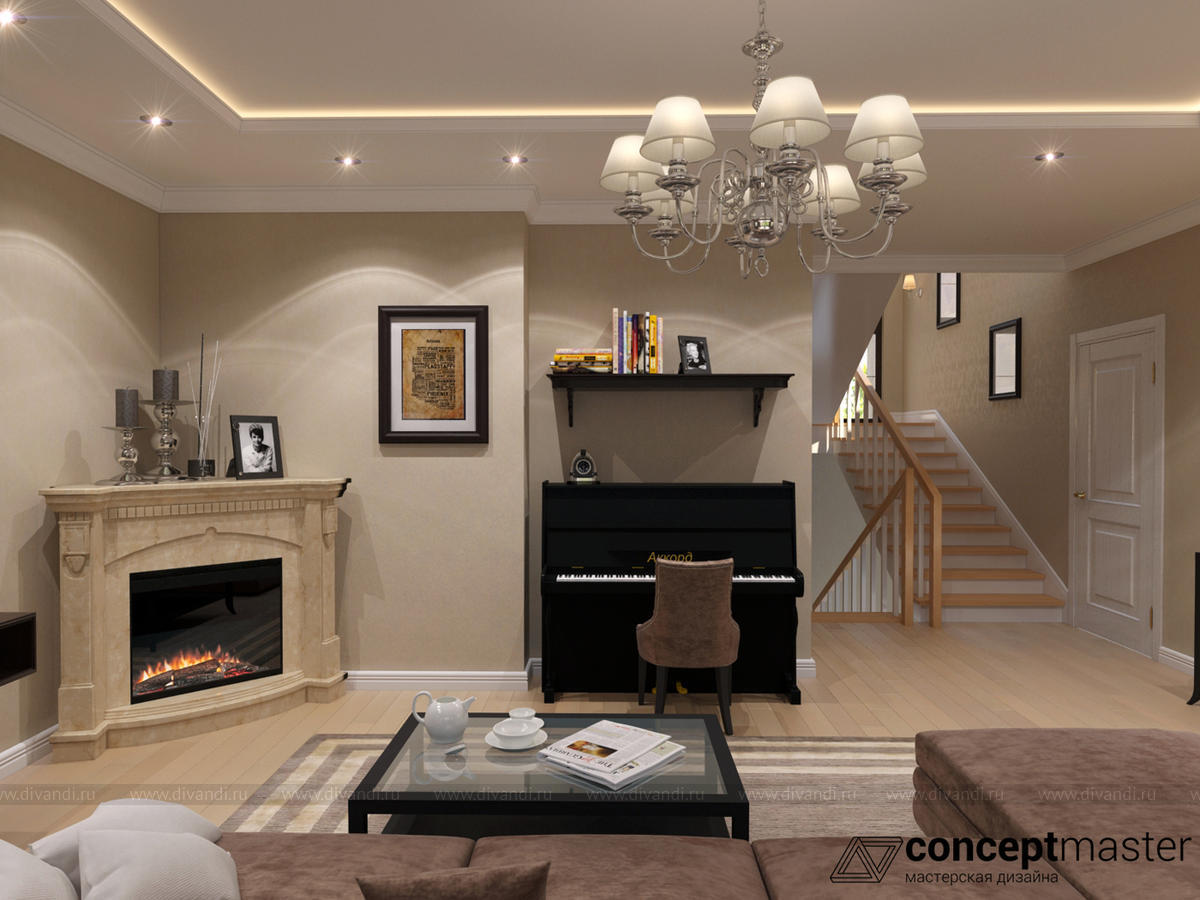 Двухэтажный светлый дом в стиле современной классики расположен в пригороде . Наши дизайнеры были приглашены на проект, когда здание уже было построено перед ними стояла задача грамотно организовать пространство небольшого особняка и создать уютный интерьер для жизни. Пространство дома было решено в стиле американской классики, представляющее собой большую студию, которая объединяет в себе гостиную, столовую, кухню, также холл. Данное решение характерно именно для американских домов отличающихся удобством и простором.