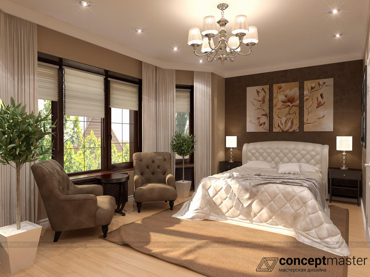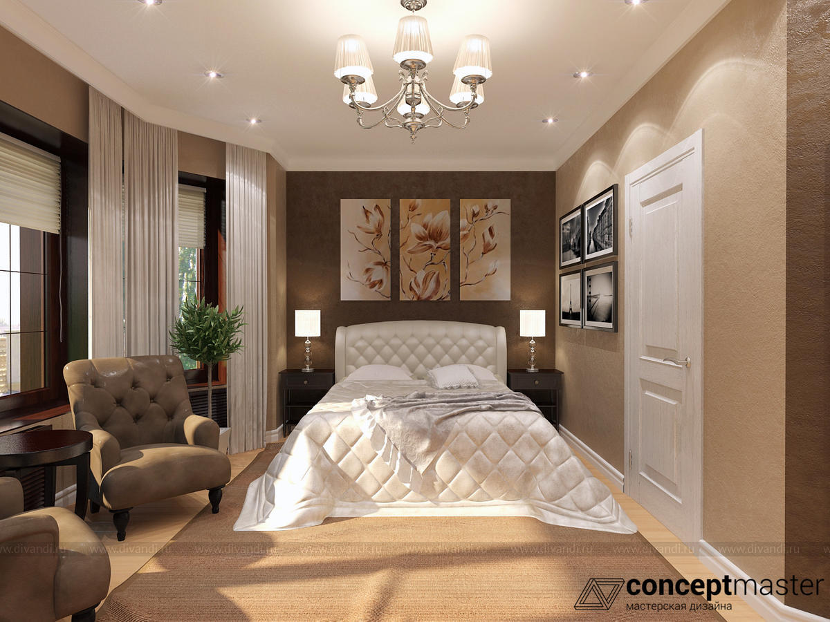 Тип проекта: загородный дом, спальня, кухня, ванная, гостиная