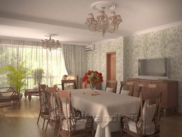 Загородный дом в спокойных тонах. Сочетание плетеной мебели и натуральных материалов.