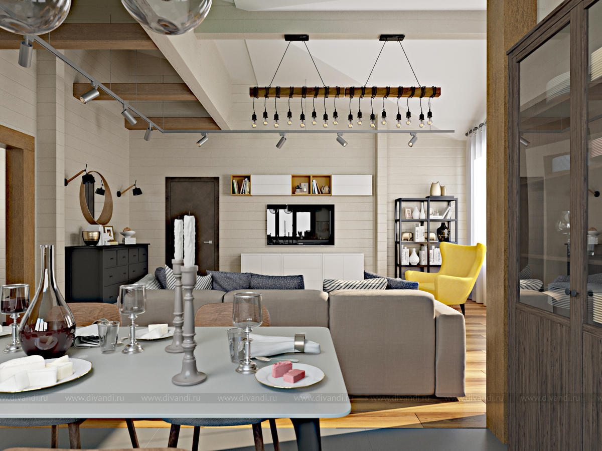 загородный дом, кухня, гостиная
