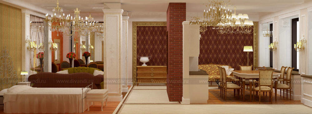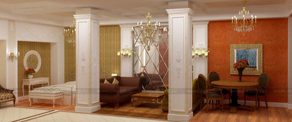 Интерьер зала классической итальянской мебели в салоне класса люкс – задача не простая. На ограниченной площади необходимо разместить как можно больше тематических зон, при этом они должны быть универсальны (то есть сегодня стоит гостиная, завтра – столовая, послезавтра – спальня), интерьер должен быть уютным для клиентов, подчеркивать достоинства мебели и соответствовать ей, при этом не мешая осмотру экспозиции. Говорят, что все эти задачи были прекрасно реализованы :)