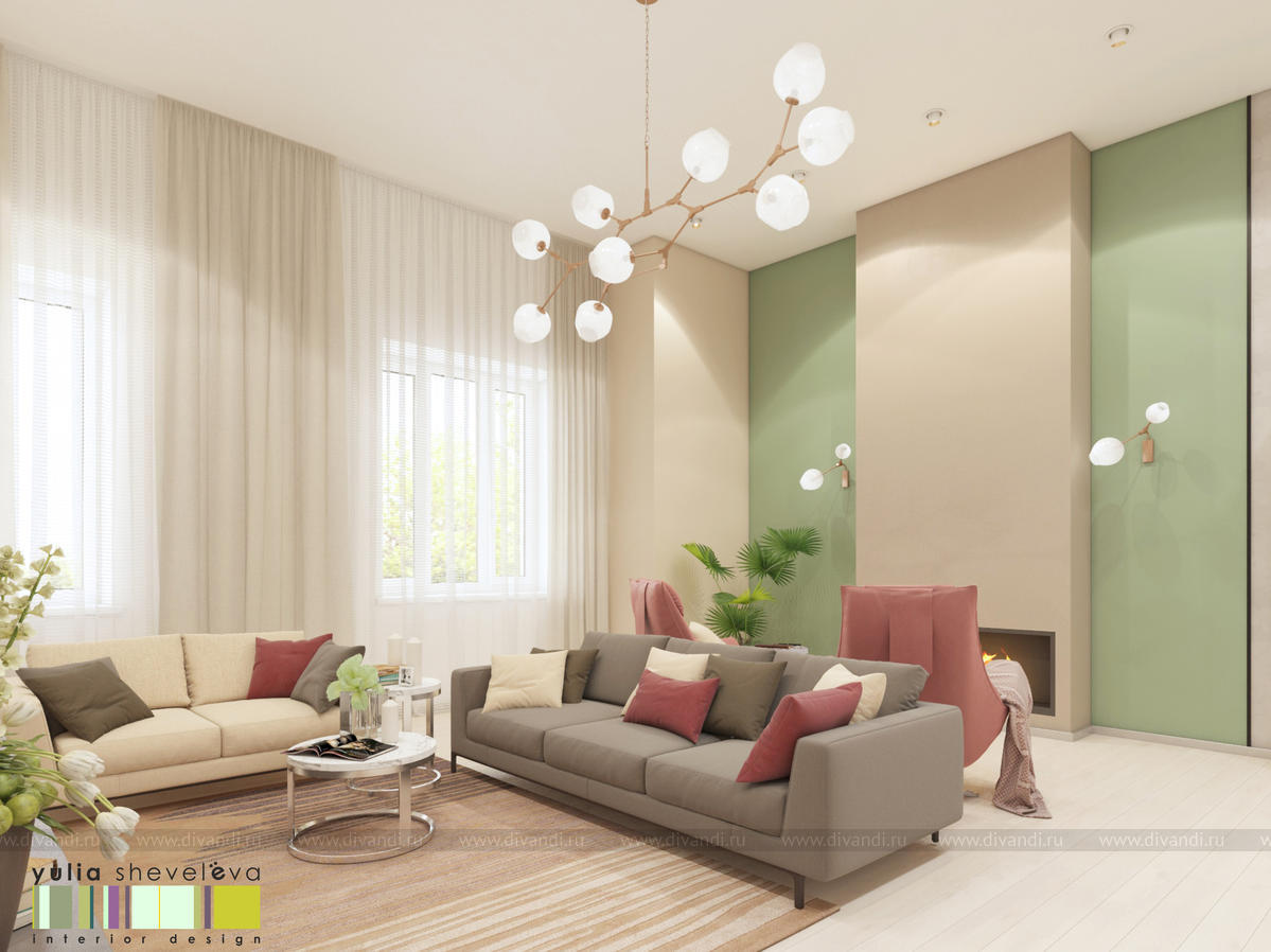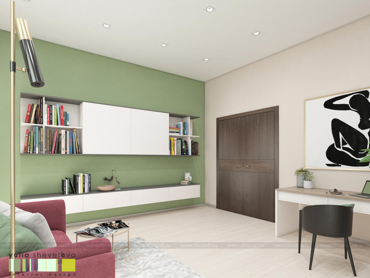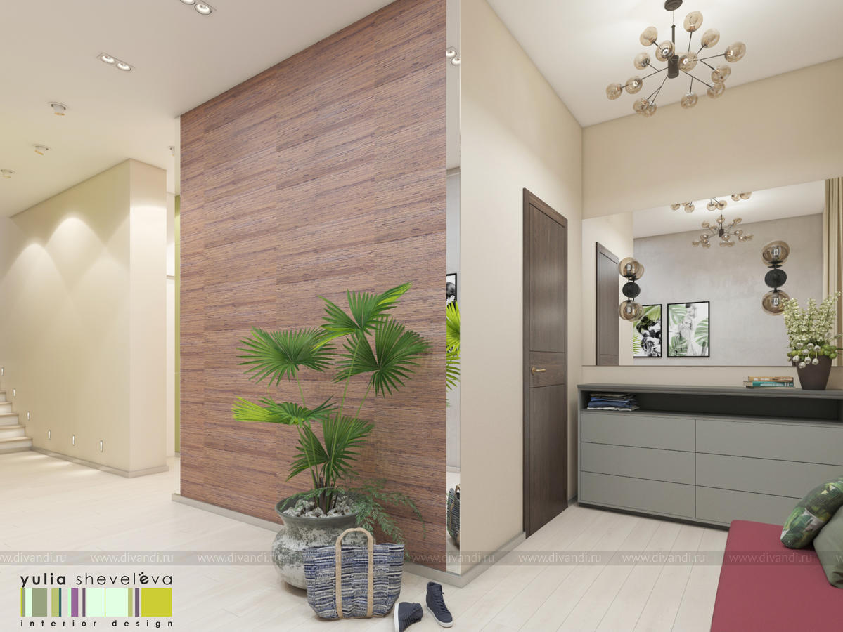 Сам дом расположен в уникальном месте, за забором находится большой красивый городской парк, и часть окон и балконов выходит именно на эту сторону. Хозяевам очень близок эко стиль, дерево и оттенки зеленого, которые очень часто встречаются в разных местах - от бледного до яркого и насыщенного.