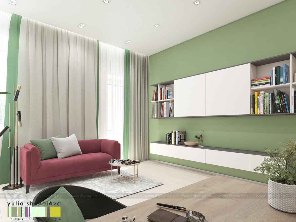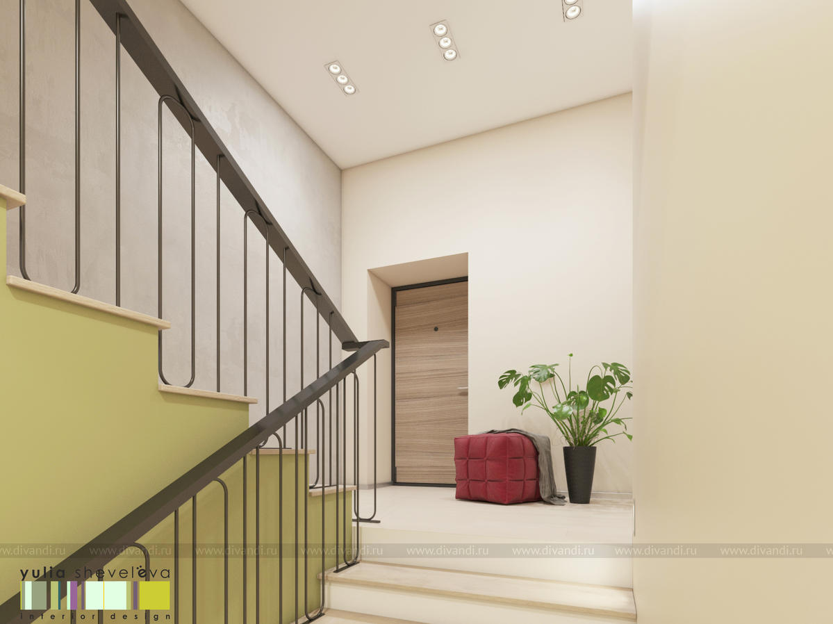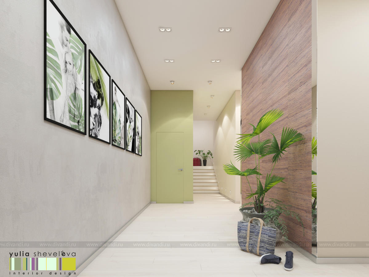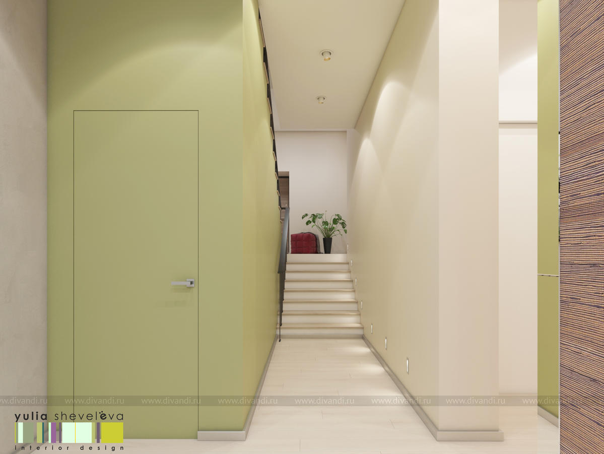 Сам дом расположен в уникальном месте, за забором находится большой красивый городской парк, и часть окон и балконов выходит именно на эту сторону. Хозяевам очень близок эко стиль, дерево и оттенки зеленого, которые очень часто встречаются в разных местах - от бледного до яркого и насыщенного.
