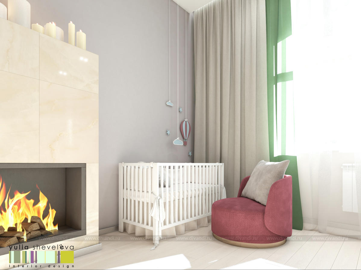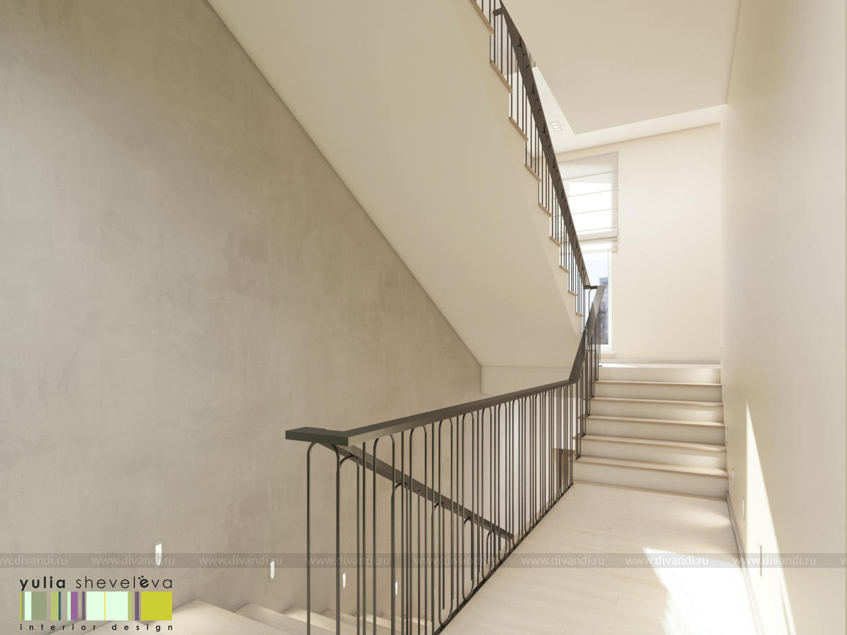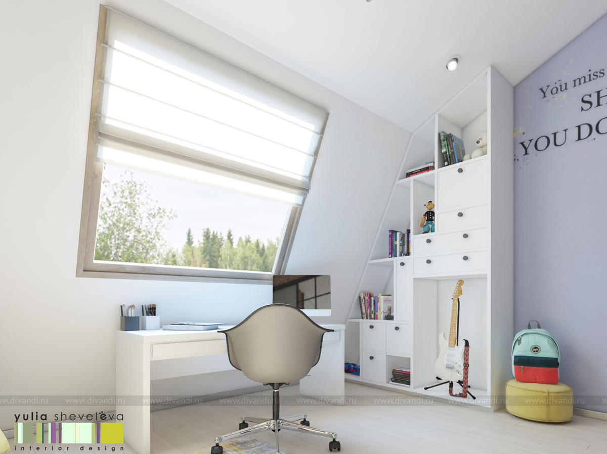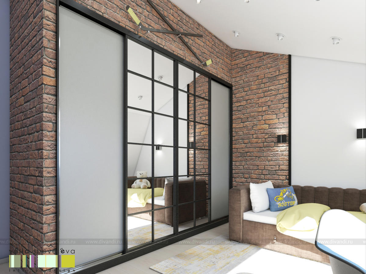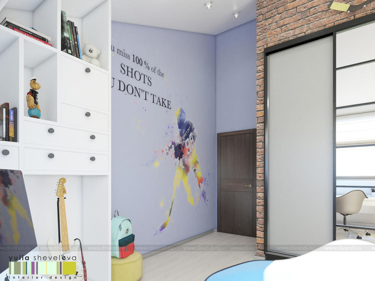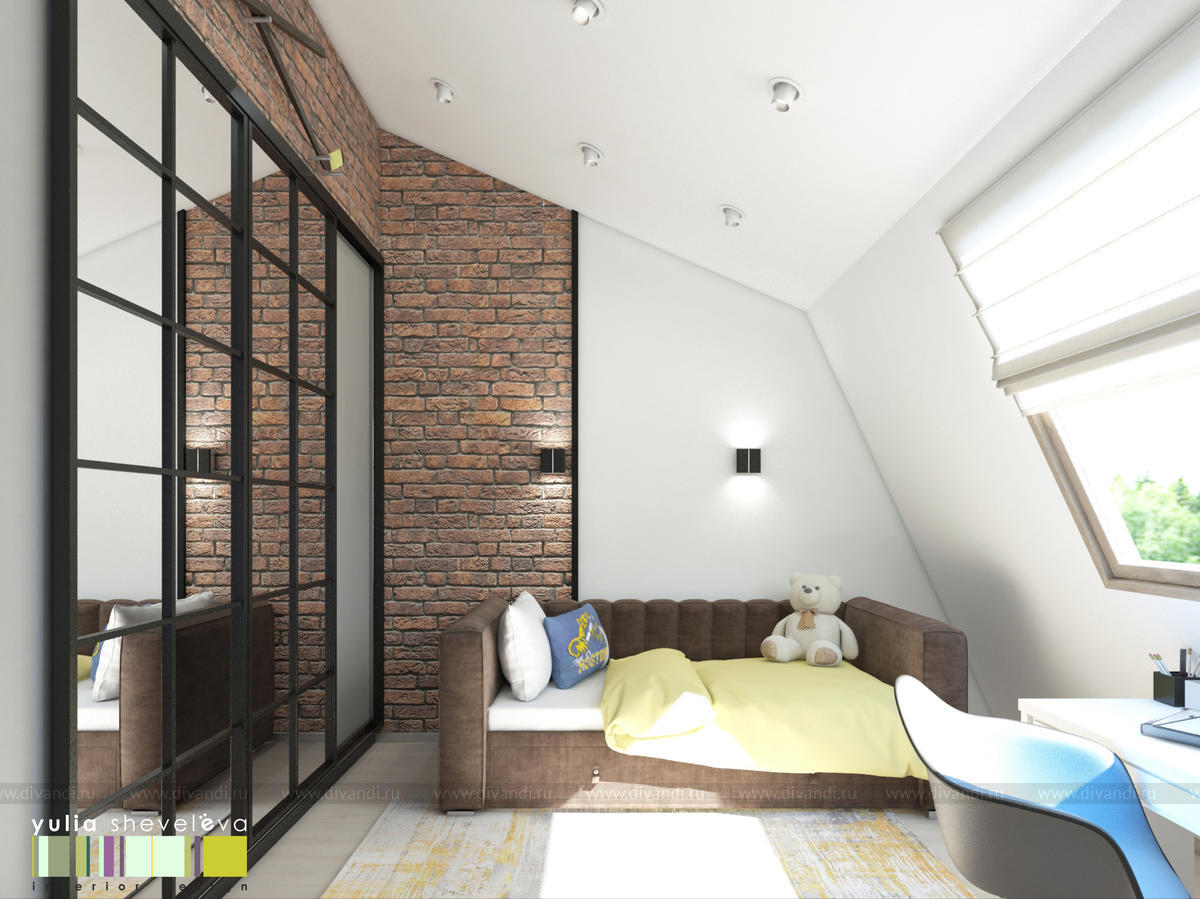 В доме есть ещё цокольный этаж. Здесь будет расположен ледовый корт, небольшой спортзал, сауна, хамам, прачечная и технические помещения. Детские комнаты предназначены для трех сыновей и оформлены все в едином стиле. Все мальчики увлекаются спортом, занимаются хоккеем. Несмотря на сложное, многофункциональное пространство, все помещения удалось выдержать в одном направлении, разбавив колористическими комбинациями и разными приёмами в оформлении.