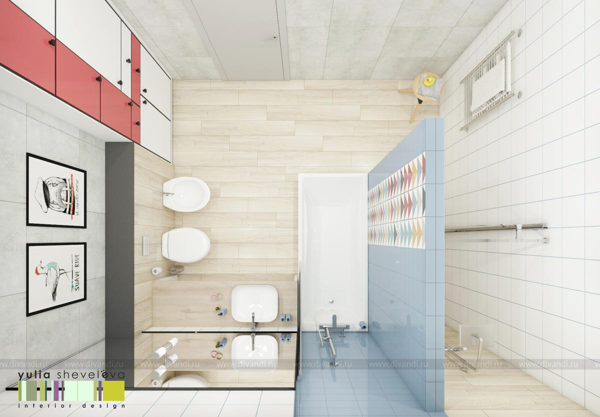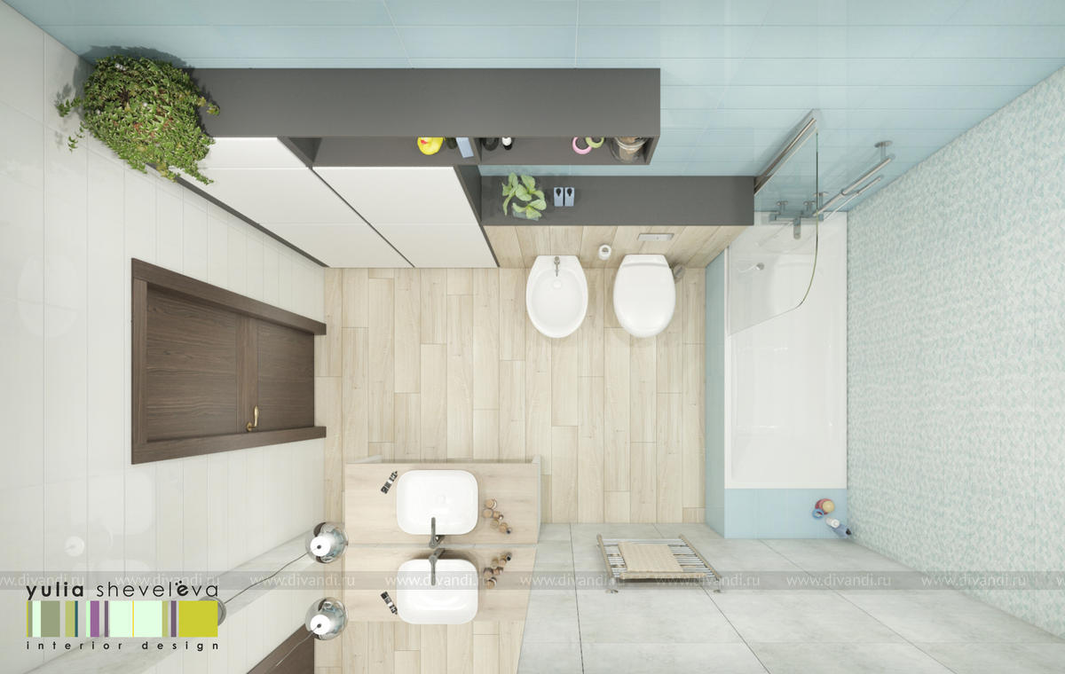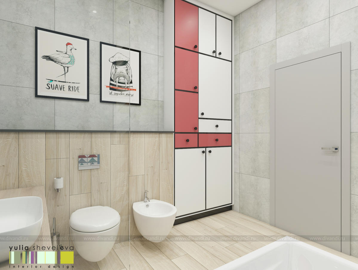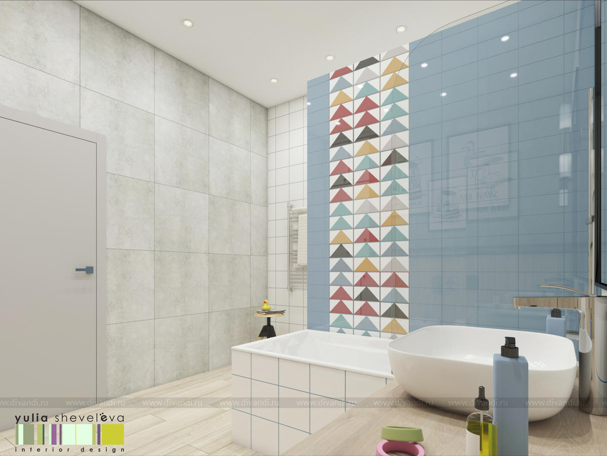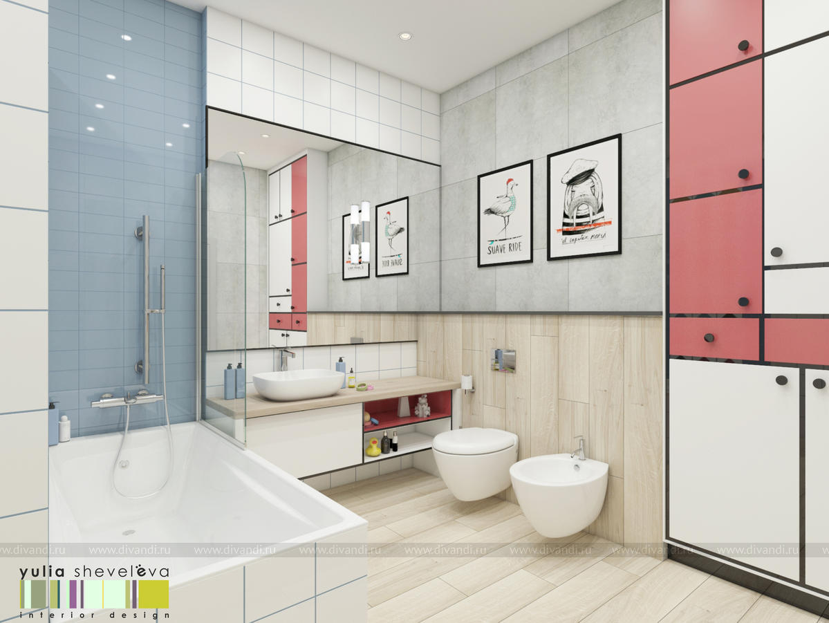 В доме есть ещё цокольный этаж. Здесь будет расположен ледовый корт, небольшой спортзал, сауна, хамам, прачечная и технические помещения. Детские комнаты предназначены для трех сыновей и оформлены все в едином стиле. Все мальчики увлекаются спортом, занимаются хоккеем. Несмотря на сложное, многофункциональное пространство, все помещения удалось выдержать в одном направлении, разбавив колористическими комбинациями и разными приёмами в оформлении.